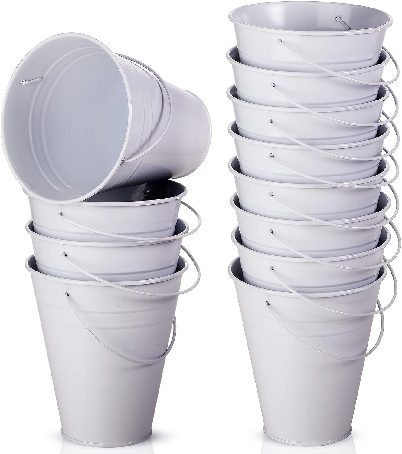 12 Pack Metal Buckets with Handle - WHITE