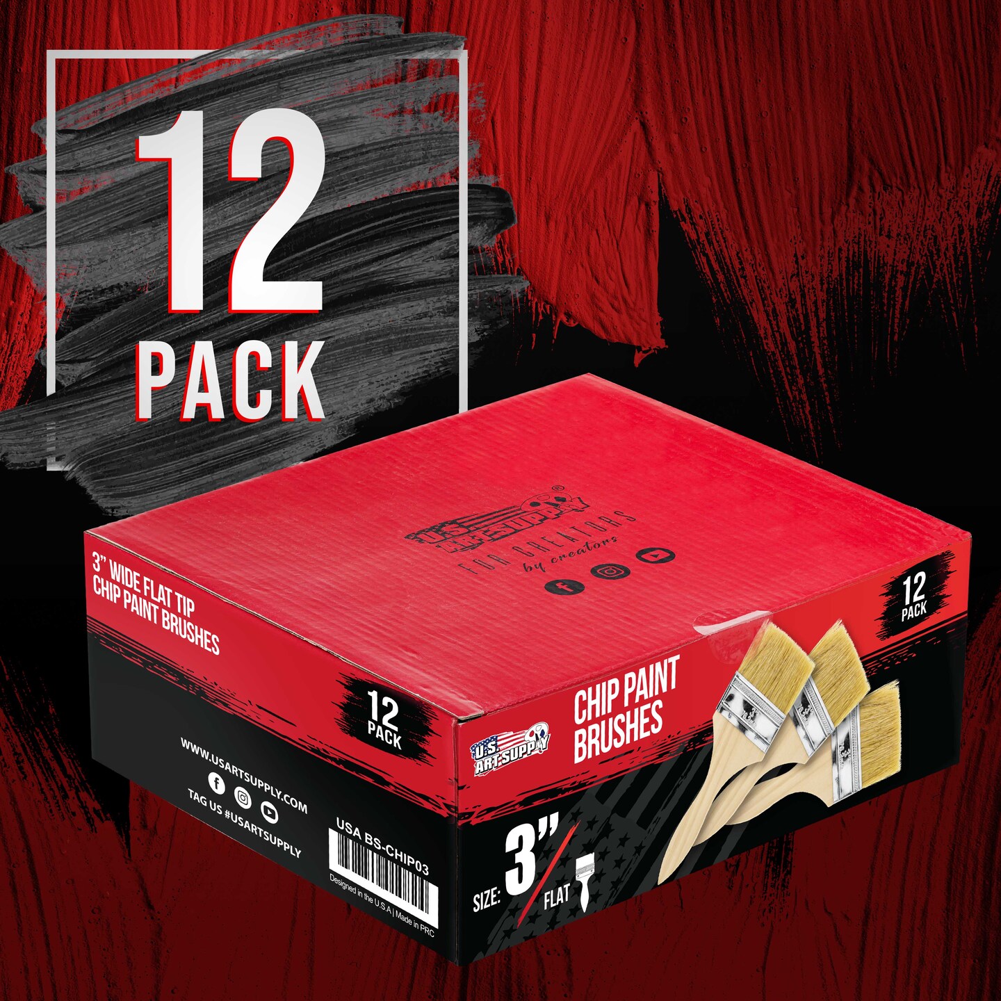 12 Pack of 3 inch Paint and Chip Paint Brushes for Paint, Stains, Varnishes, Glues, and Gesso