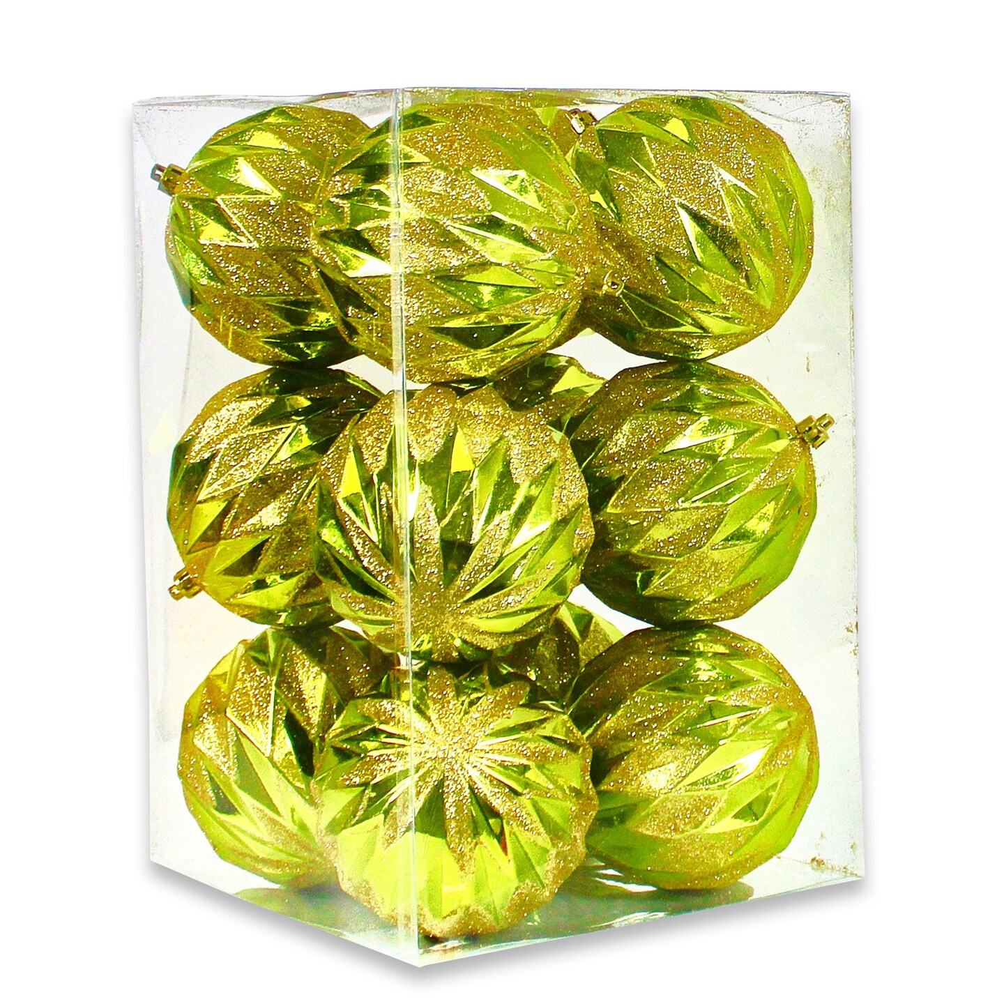 12 Pack of Lime Green and Gold Ball Ornaments