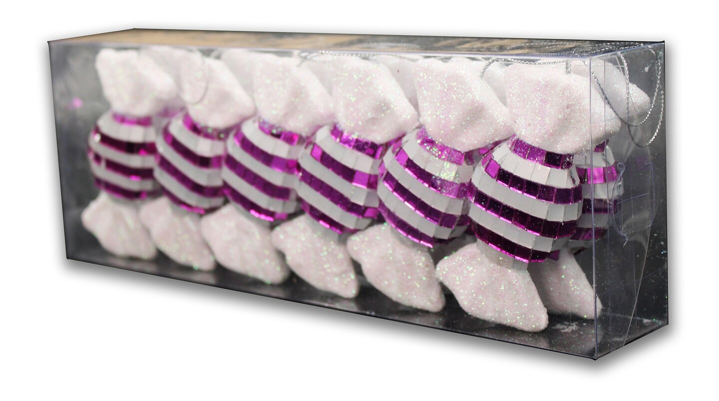 12 Pack of Pink Candy Ornaments with Glitter Enhancements