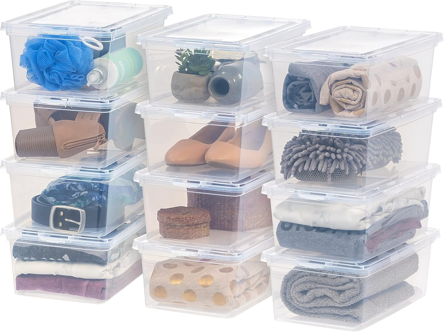 12 Pack Plastic Storage Container Bin with Latching Lid 7 Quarts (Clear)