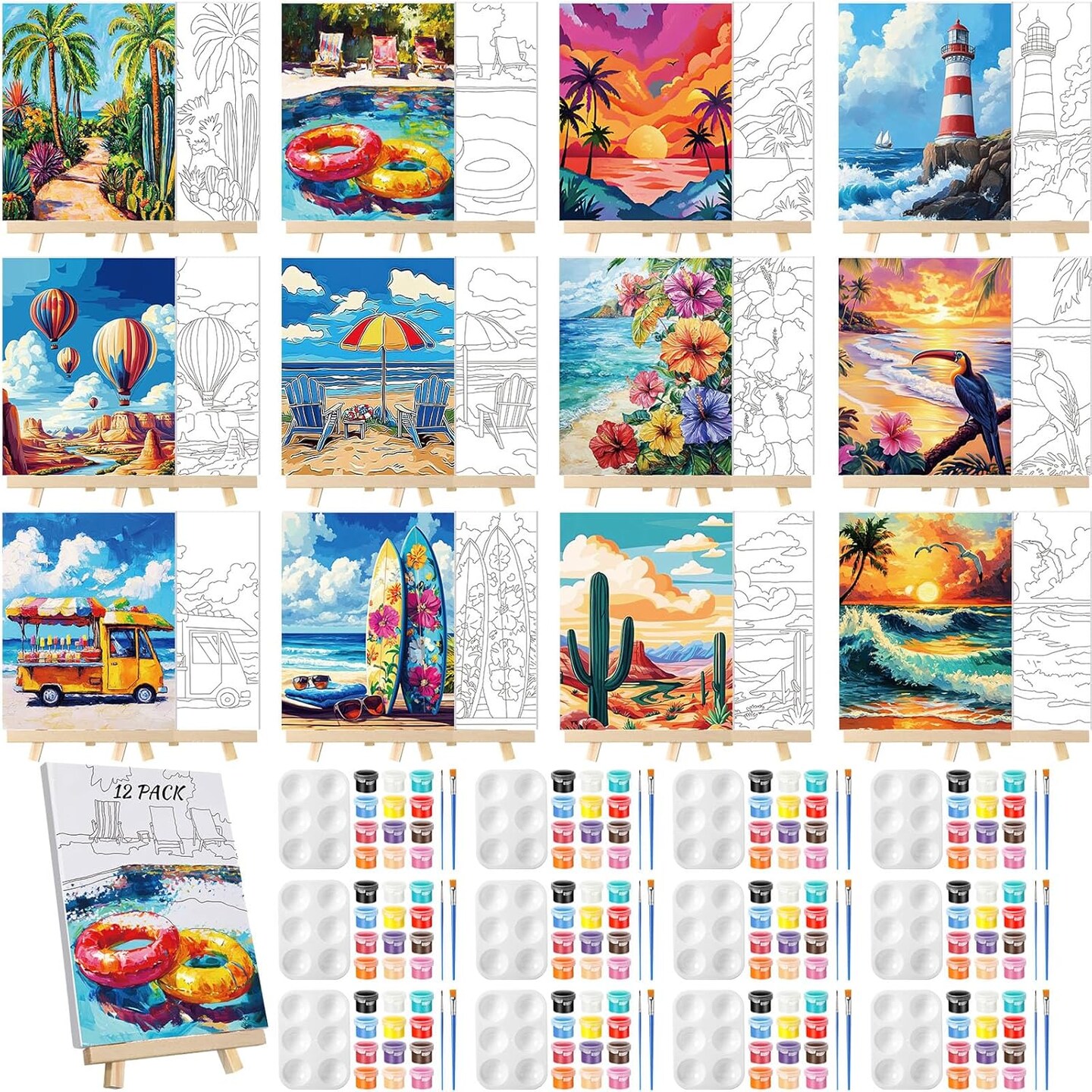 12 Pack Pre Drawn Canvas for Painting Sip and Paint Kit 8" x 10"