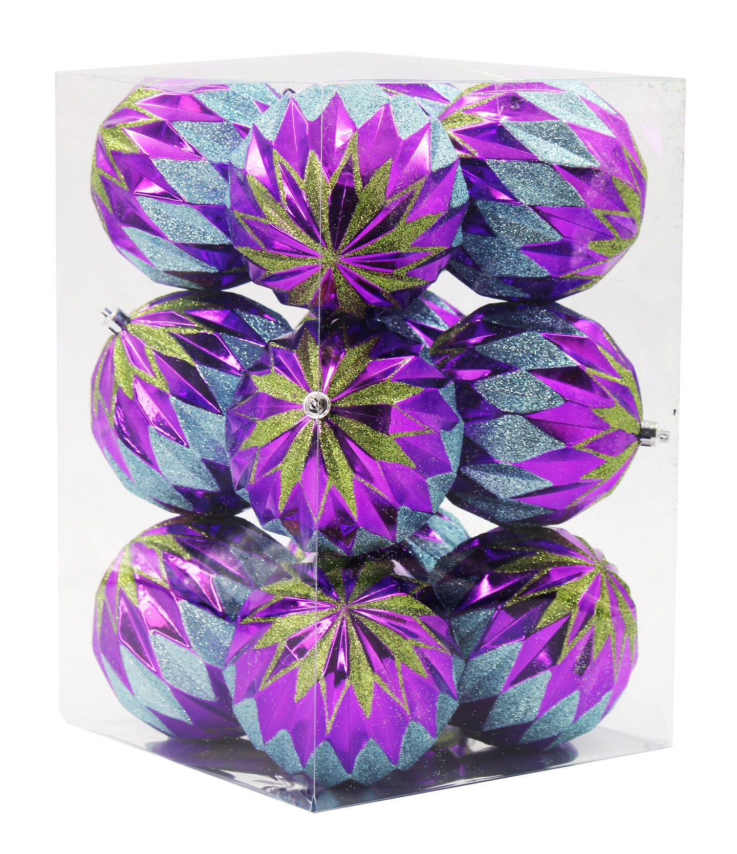12 Pack Purple, Lime Green and Aqua Assorted Ball Ornaments