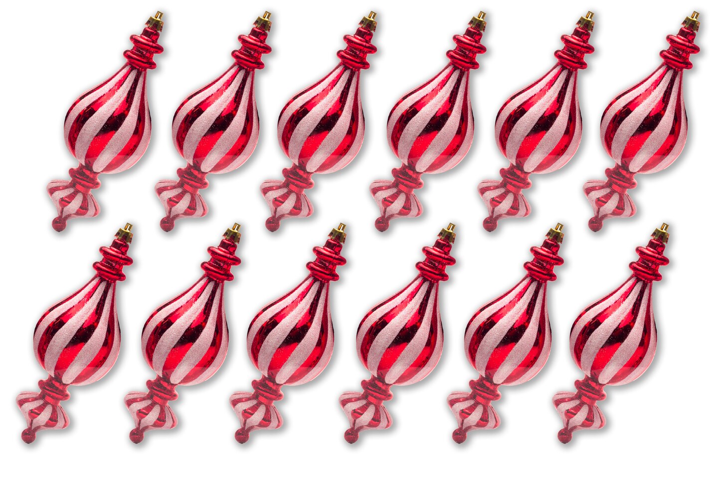 12 Pack Red and White Finial Candy Ornament Set
