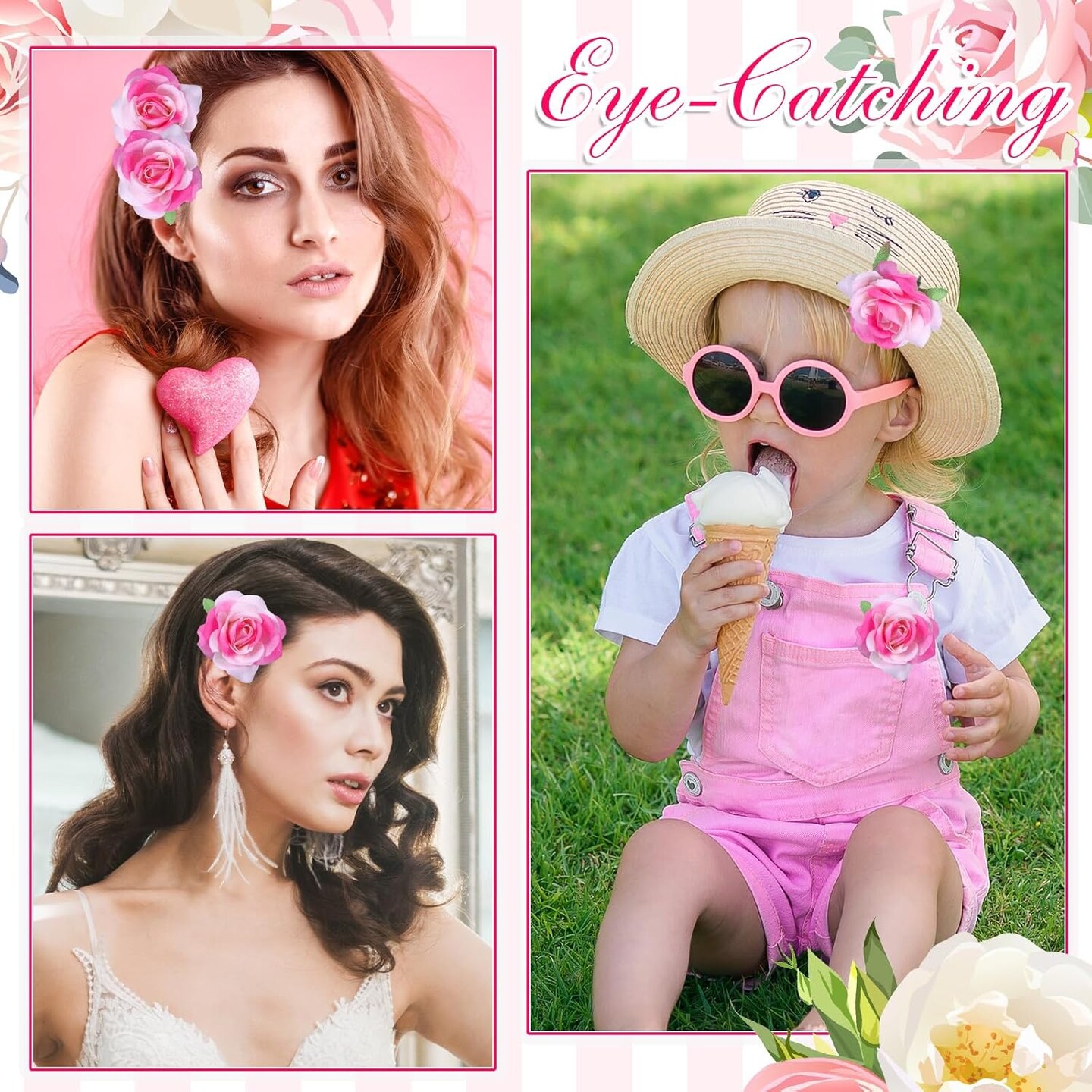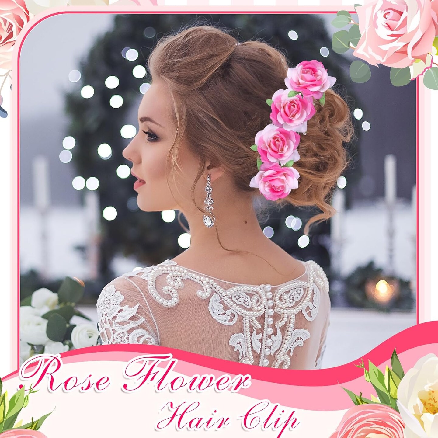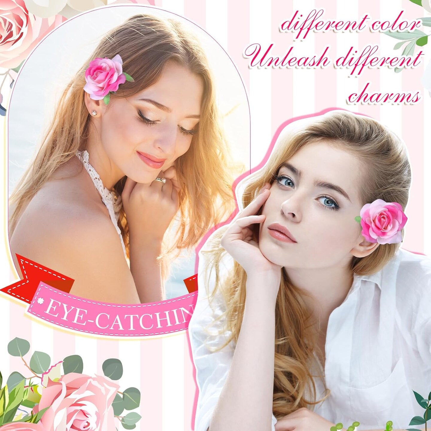 12 Pack Rose Hair Clip Flower Brooch Floral Hairclips Mexican Flowers Rose Hair Accessories