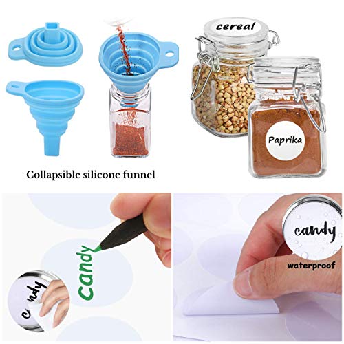 12 Pack Spice Jars, 4oz Small Glass Jars with Airtight Hinged Lid, With 12 Spice Labels & Silicone Funnels, Airtight Glass Jars for Spices, Art Craft Storage (12 Pack)