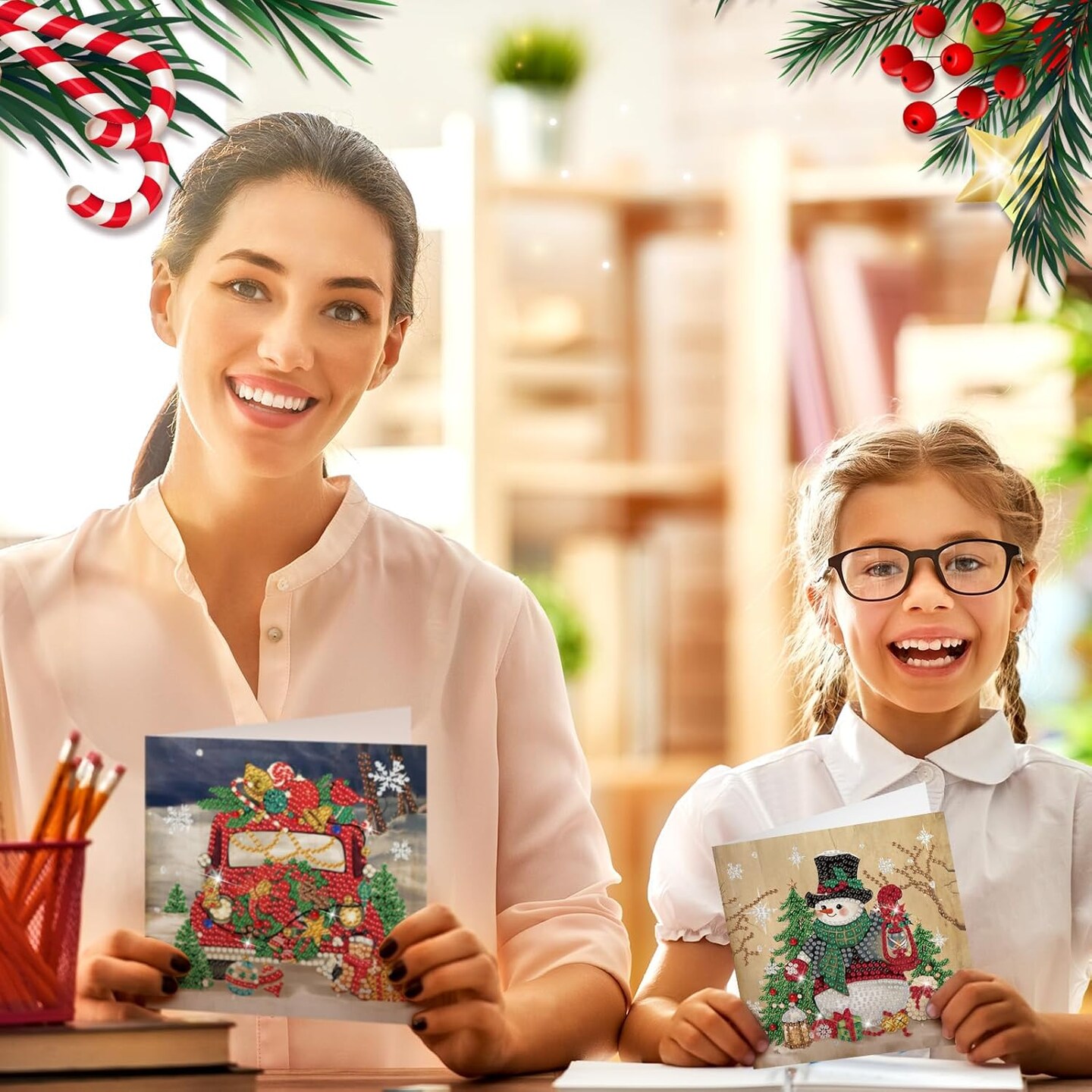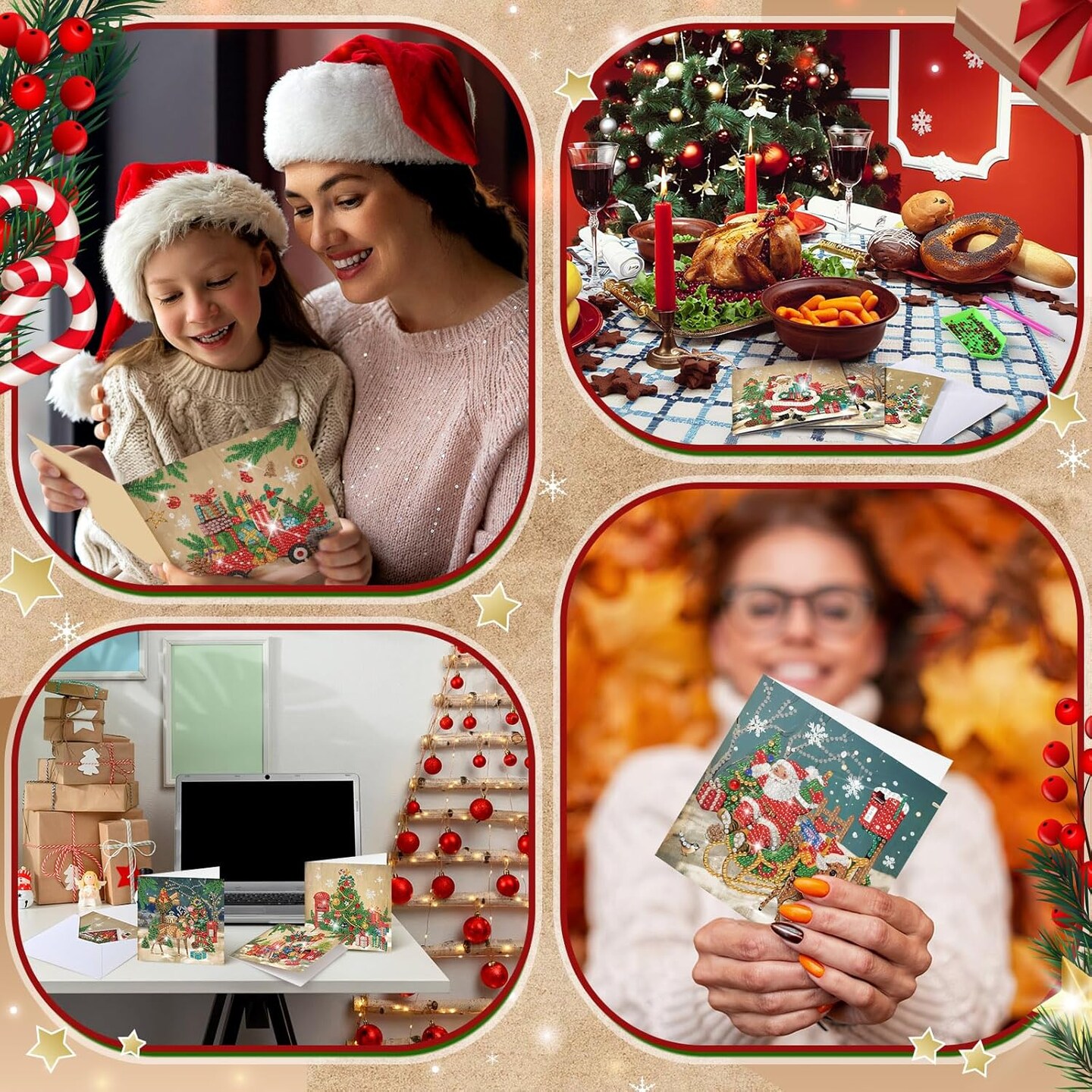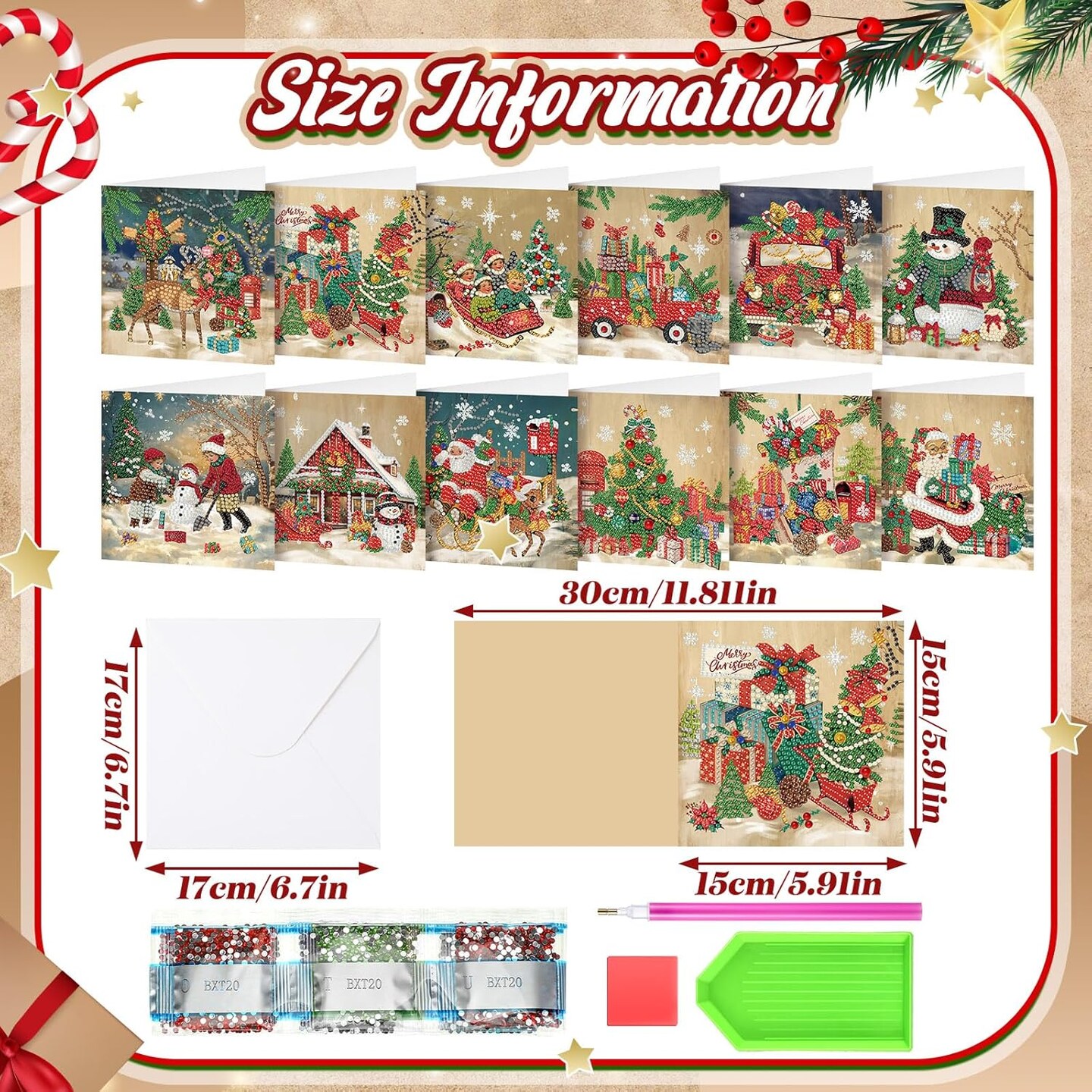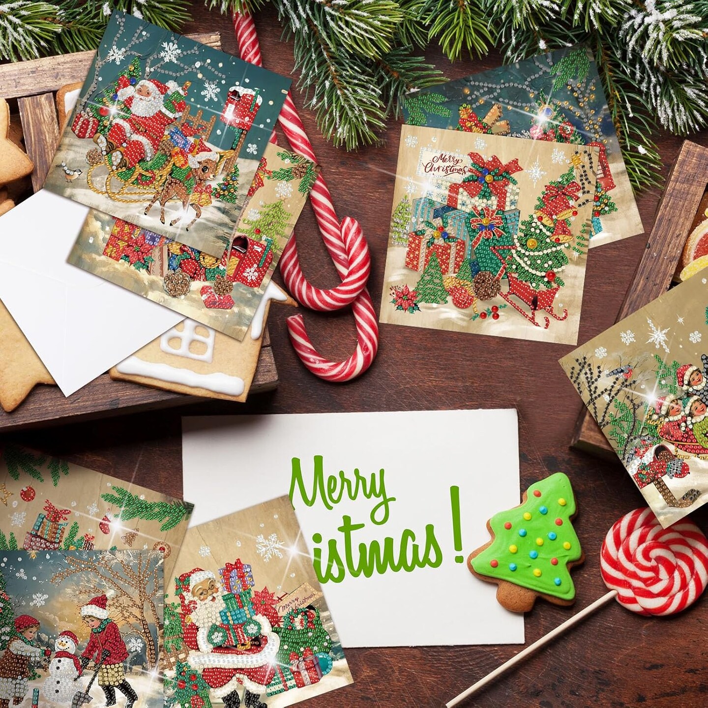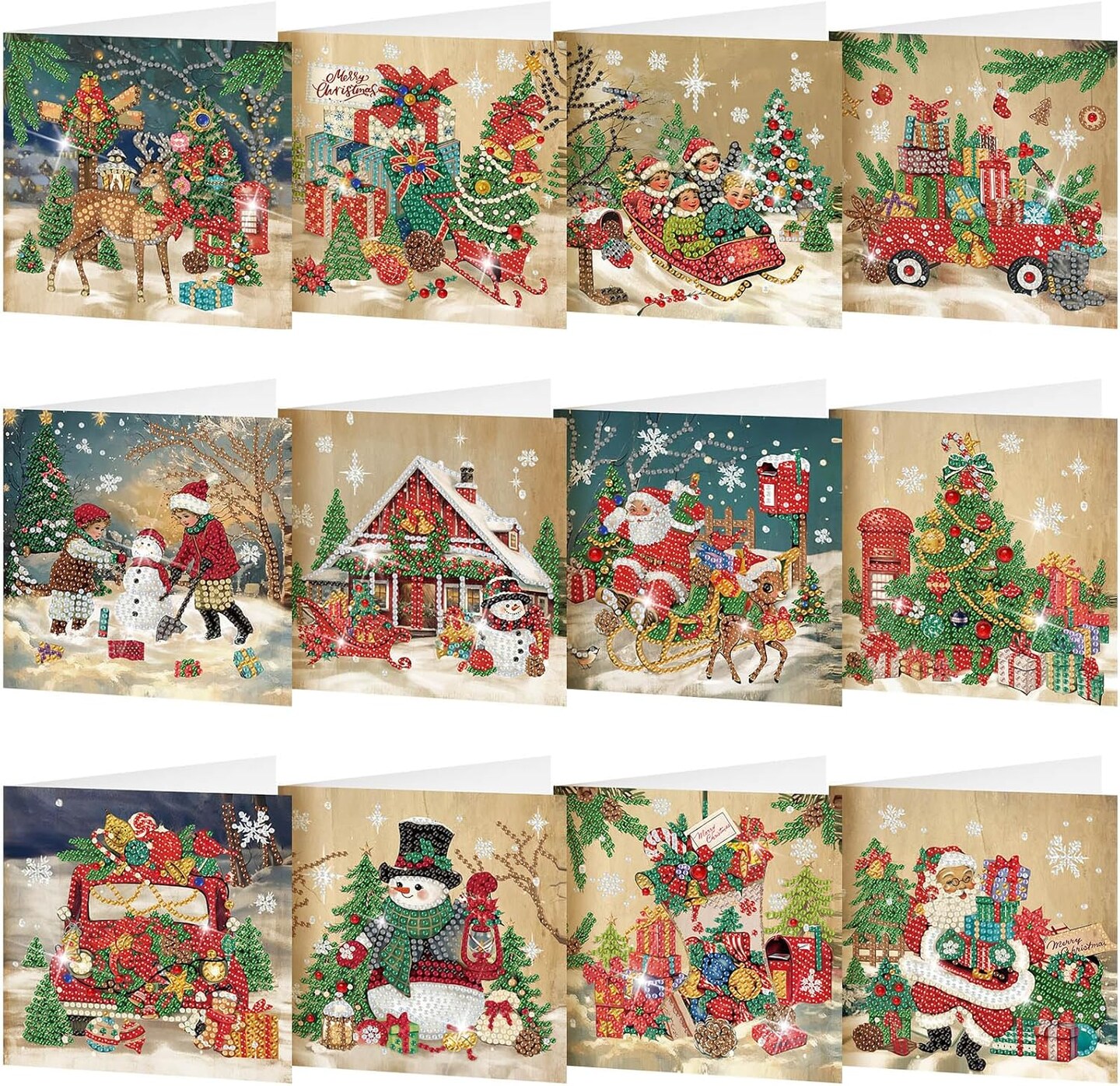 12 Pack Vintage Christmas Diamond Painting Greeting Card Kits – DIY Retro 5D Rhinestone Christmas Cards with Envelopes for Adults, Handmade Xmas Gifts for Family & Friends