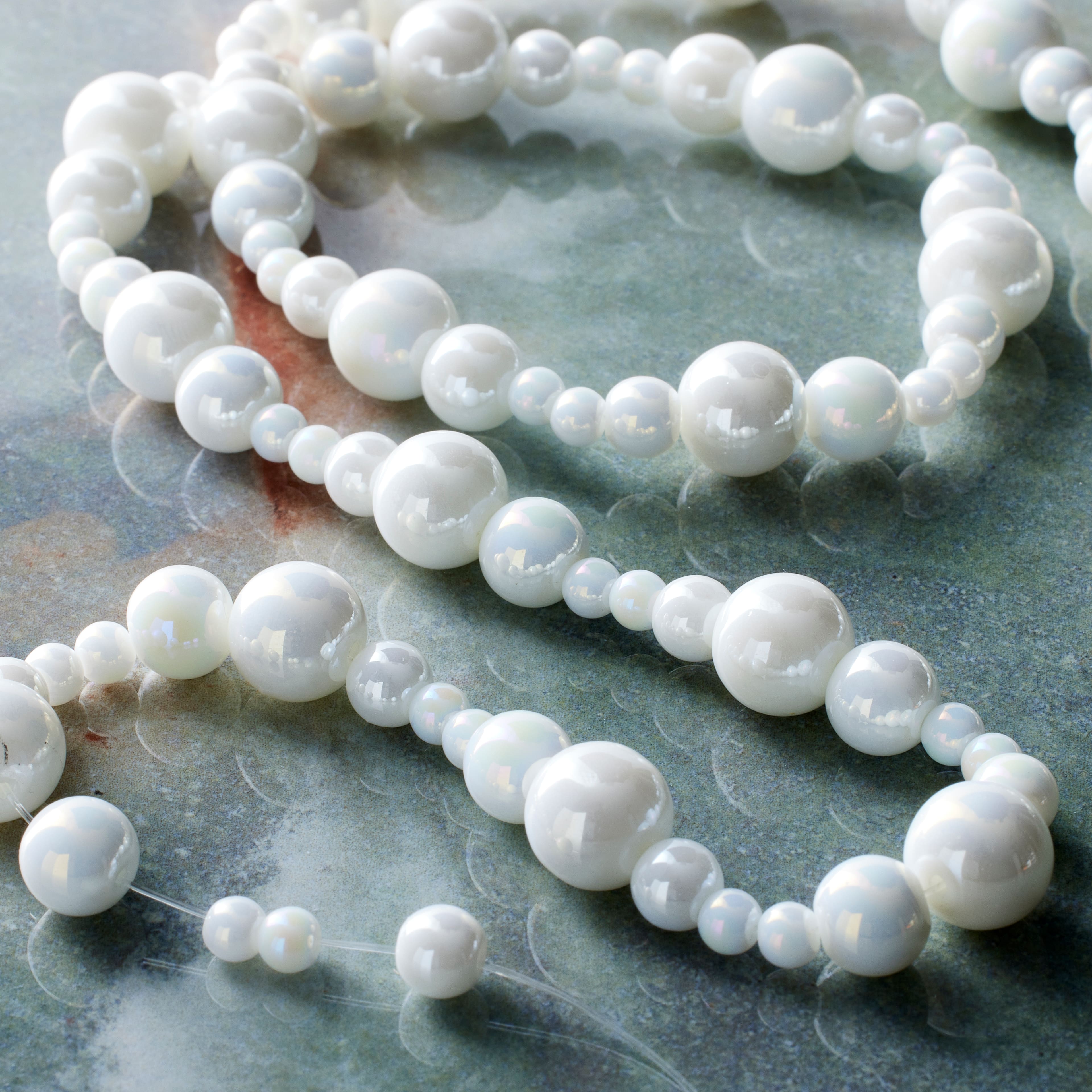 12 Pack: White Marble Glass Round Beads by Bead Landing™