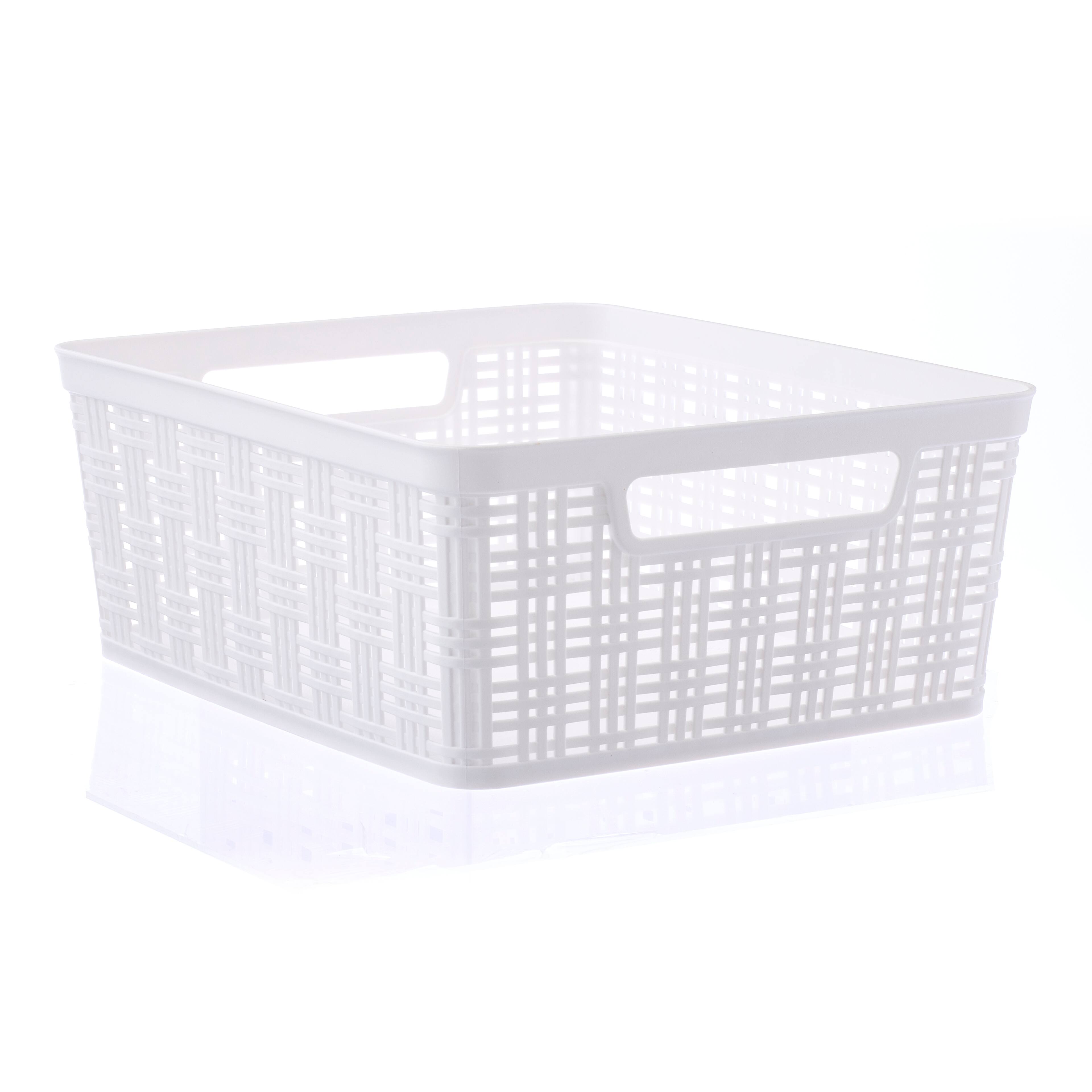 12 Pack: White Plastic Wicker Storage Basket by Simply Tidy®