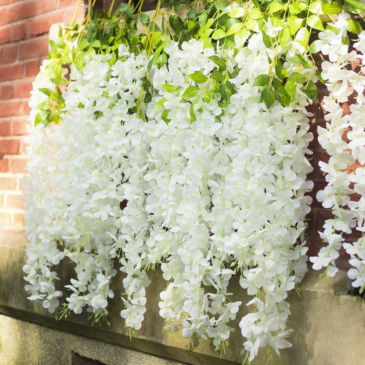 12 Pack Wisteria Hanging Artificial Flowers – 36 Branches, 3.7 ft Silk Vine Garland in Beige, Green & White for Wedding, Party, Garden & Home Wall Décor
