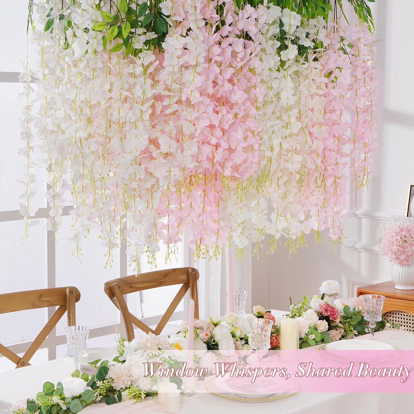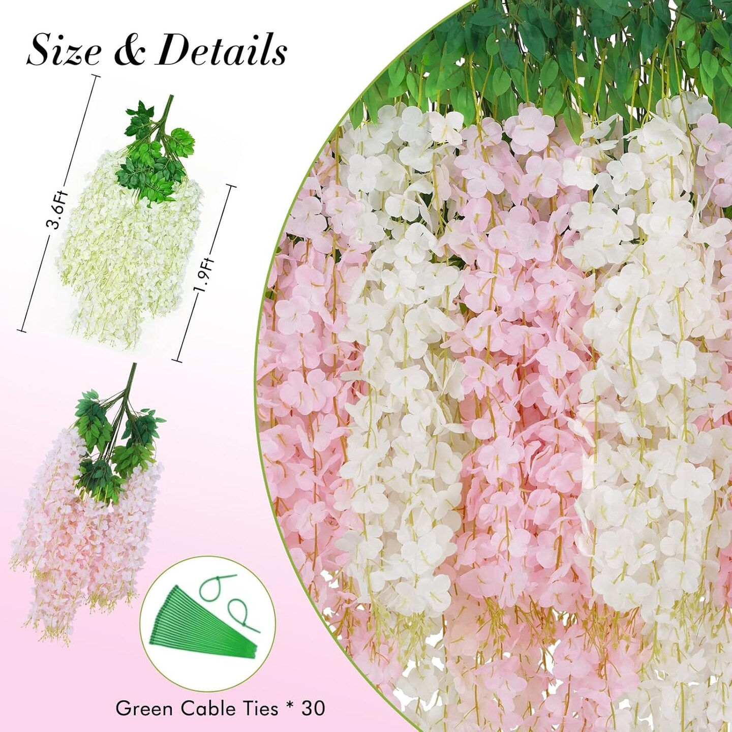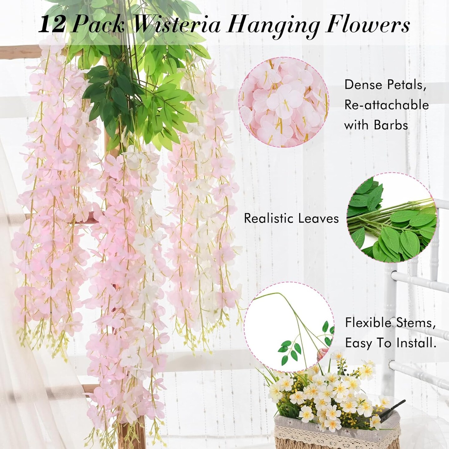12 Pack Wisteria Hanging Flower Garlands (White & Light Pink)