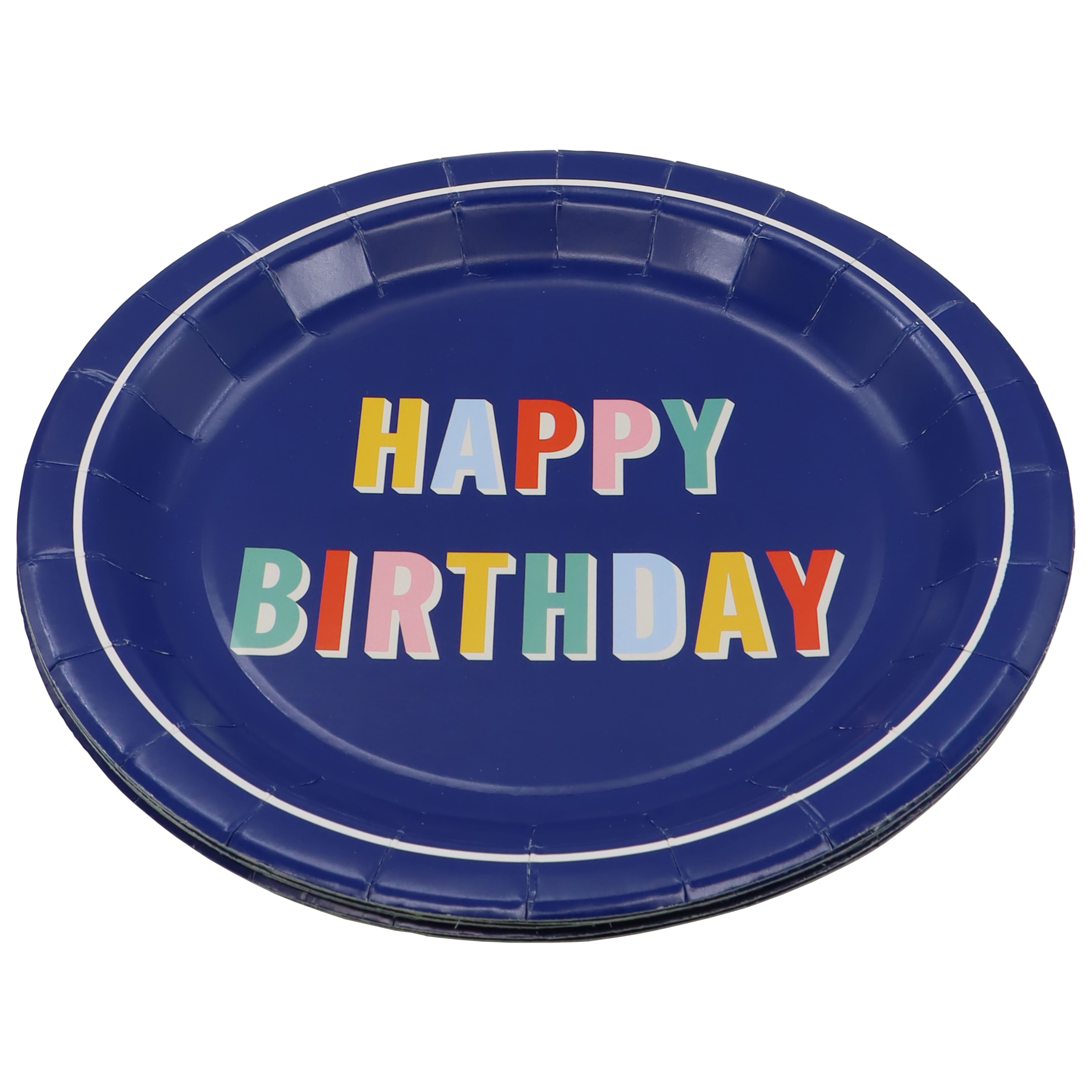 12 Packs: 10 ct. (120 total) 9" Blue Happy Birthday Paper Plates by Celebrate It™
