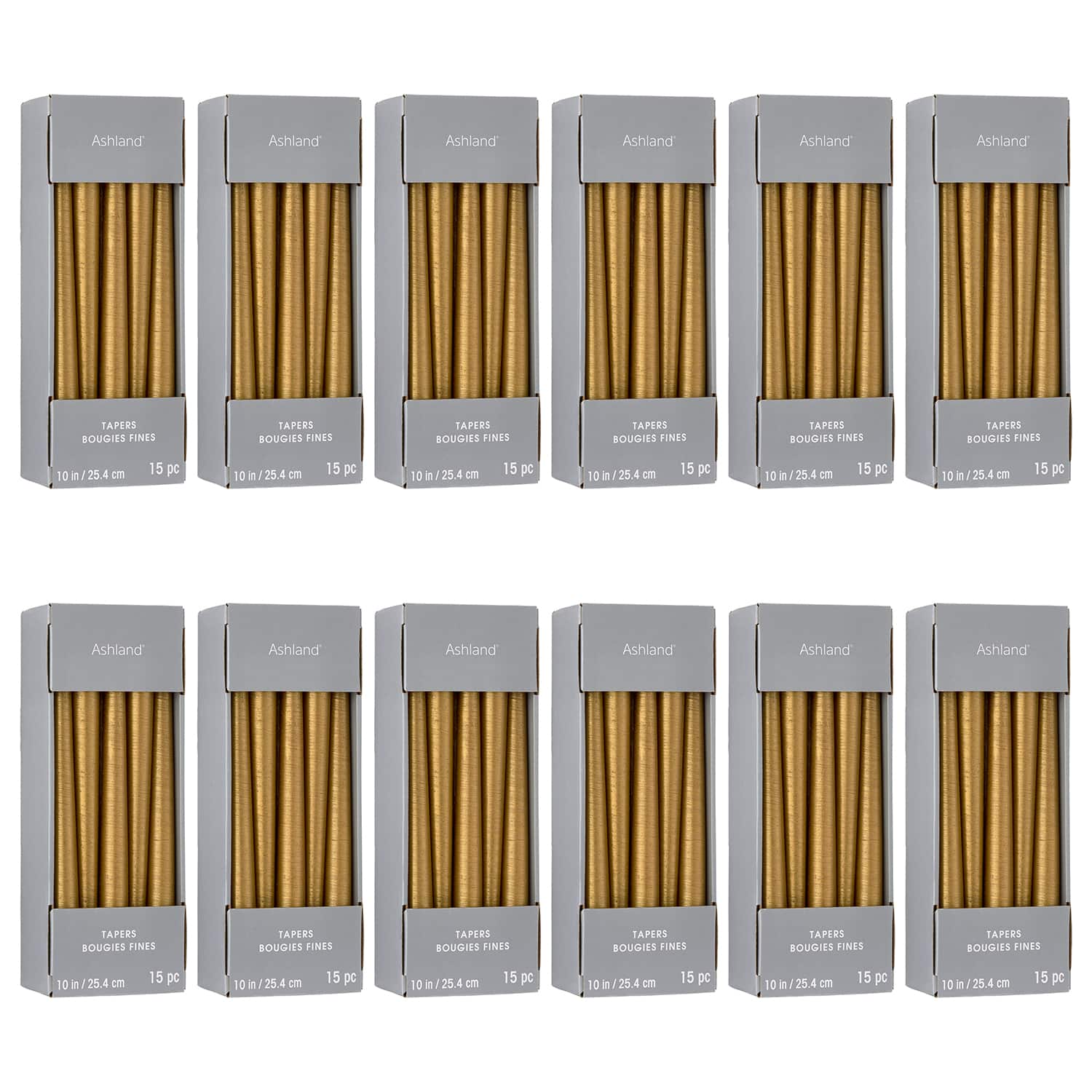 12 Packs: 15 ct. (180 total) Basic Elements™ 10" Gold Taper Candles by Ashland®