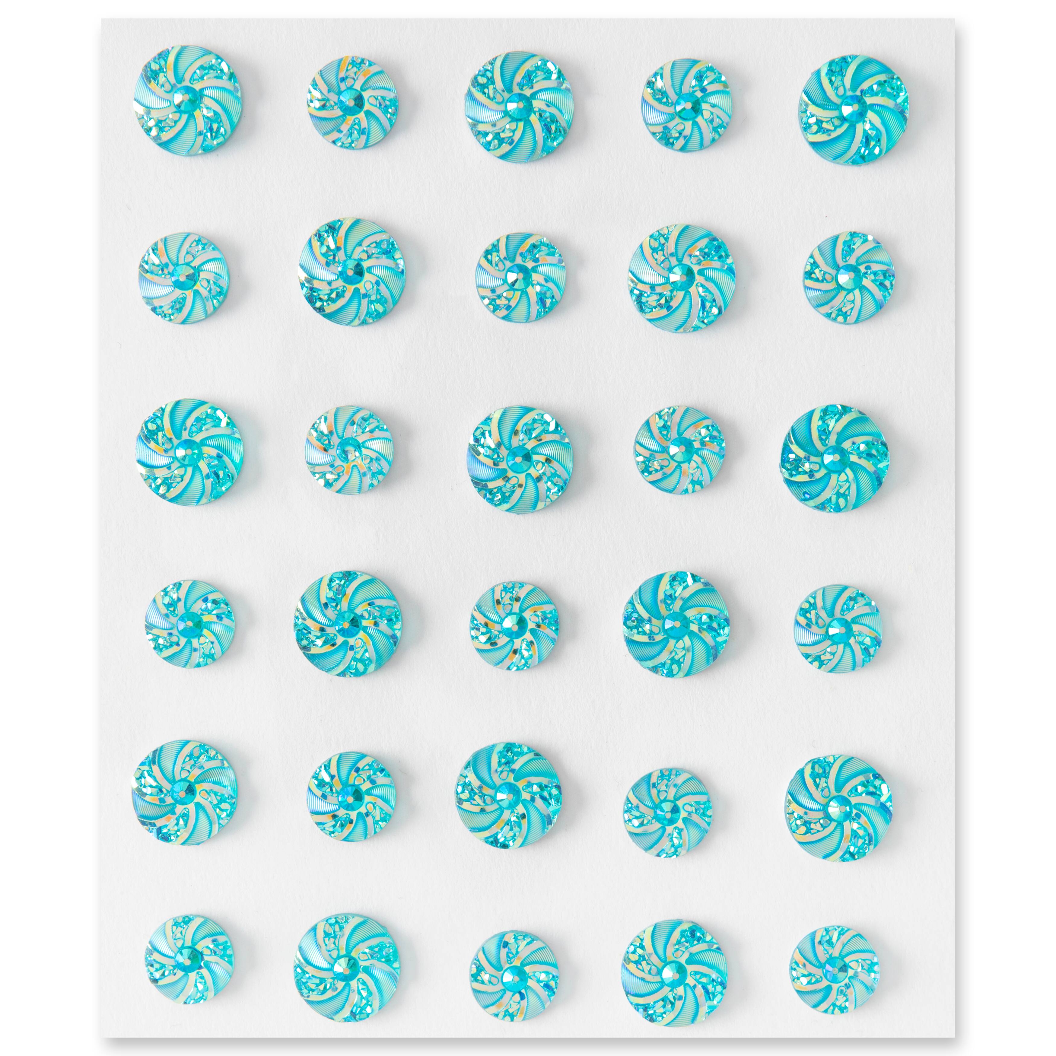12 Packs: 30 ct. (360 total) Aqua Iridescent Pinwheel Bling Stickers by Recollections™
