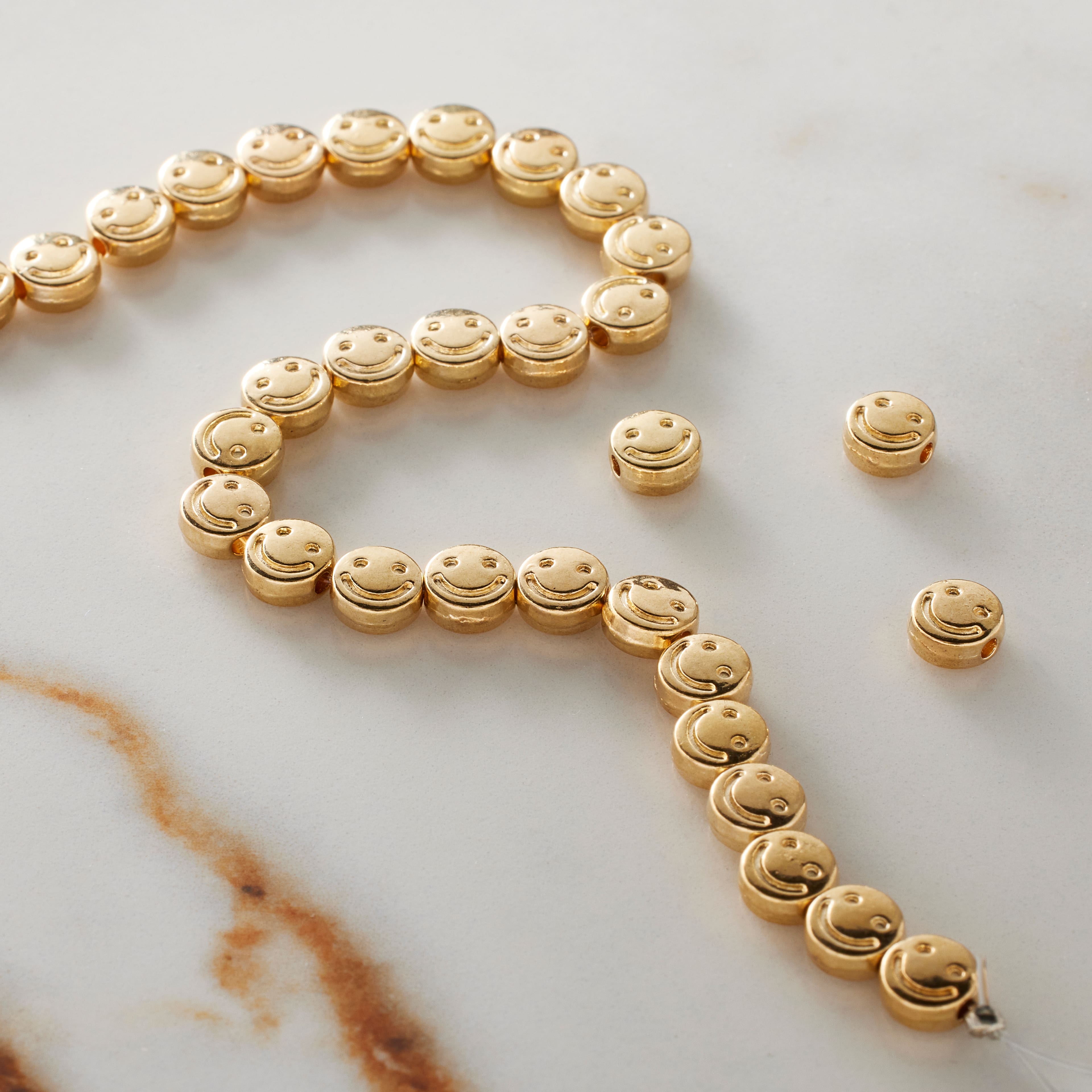 12 Packs: 32 ct. (384 total) Gold Metal Smiley Face Coin Beads, 5.5mm by Bead Landing™