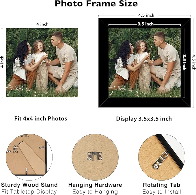 12 Packs 4x4 Picture Frames, Lightweight 4 by 4 Frames Bulk Set of 12 Collage Wall Decor Photo Frames Set for Wall and Tabletop, Black