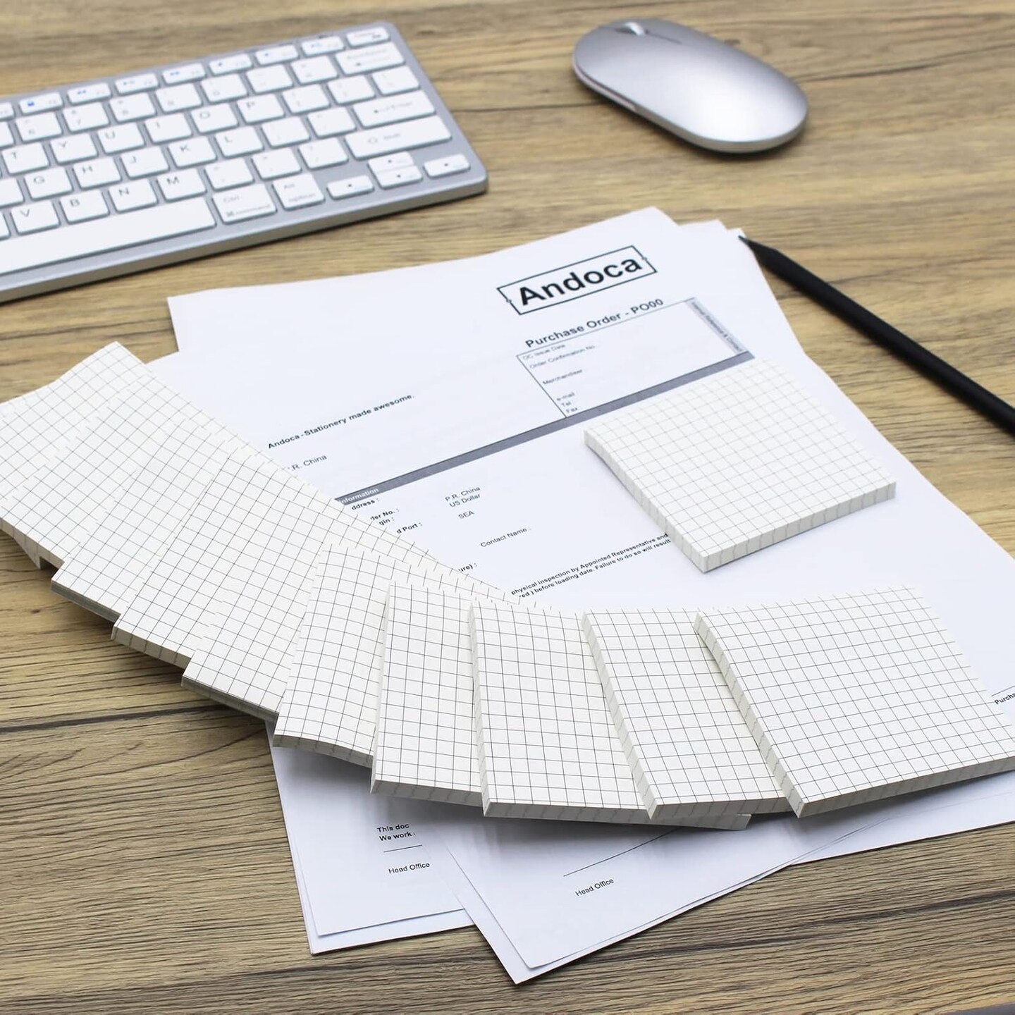 (12 Pad) Lined Grid Sticky Notes, Self-Stick Notes, Easy to Post for School, Office, Notebook, White Color Pads/Pack