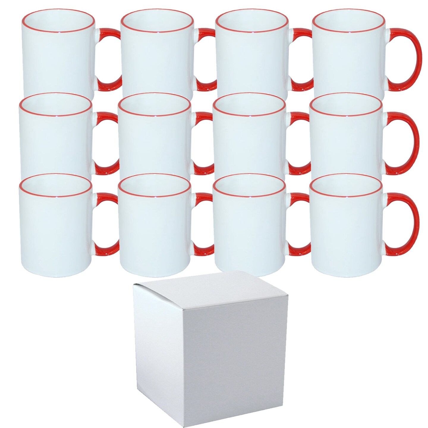 12 Pcs 11OZ Red Rim & Handle Sublimation Mugs With Individual White Boxes