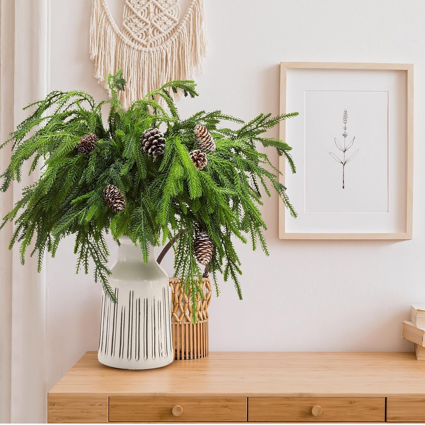 12 Pcs 18 Inch Christmas Norfolk Pine Branches (Green) 16.92"D x 7.87"W x 0.78"H