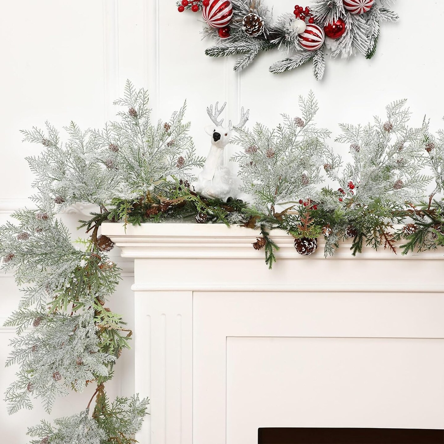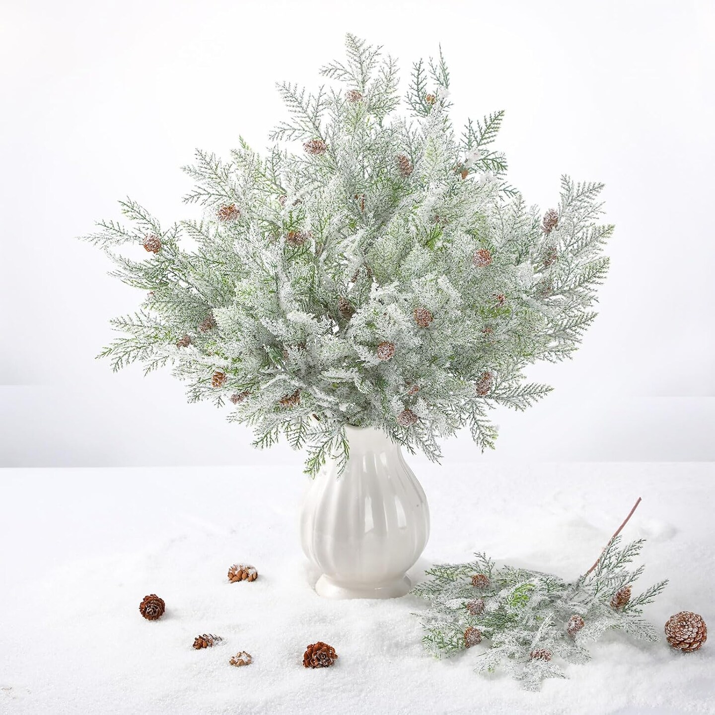 12 Pcs 18 Inch Large Christmas Pine Cones Picks (Green, White)