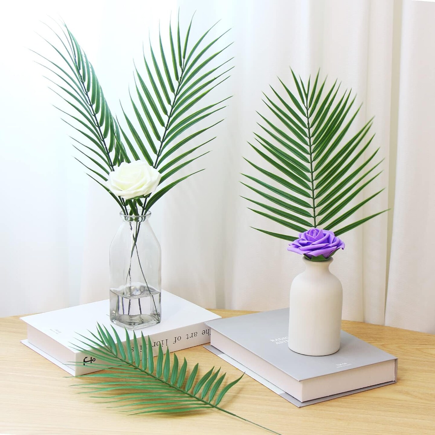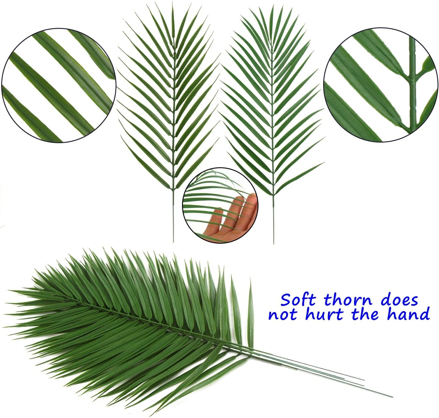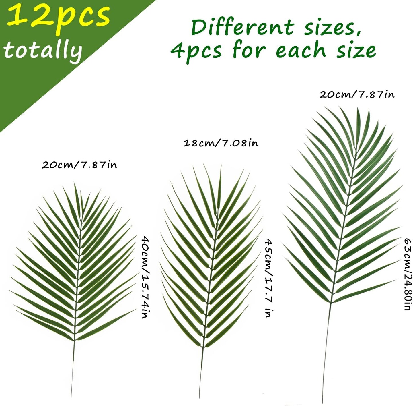 12 PCS Artificial Palm Leaves, Assorted Sizes Faux Large Palm Fronds Fake Tropical Plant Simulation Safari Leaves with Stems for Home Hawaiian Luau Party Jungle Beach Theme Party Decoration