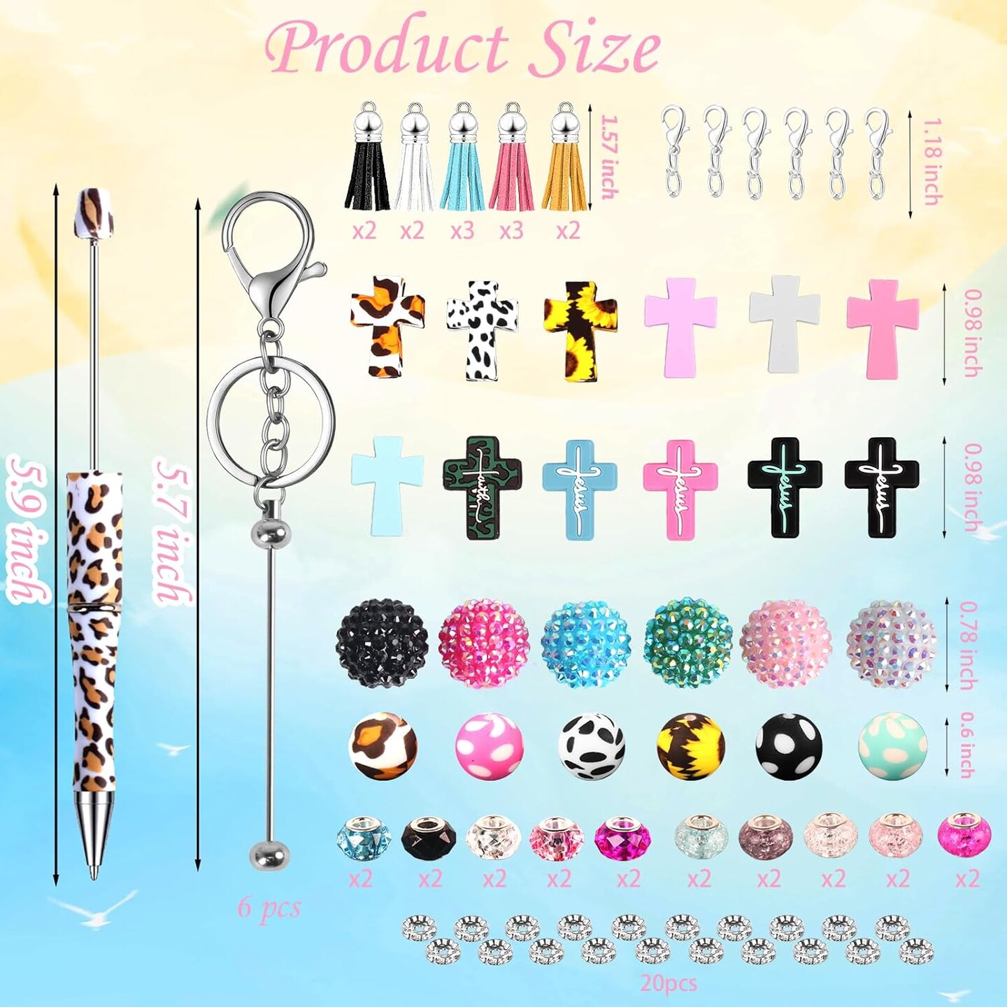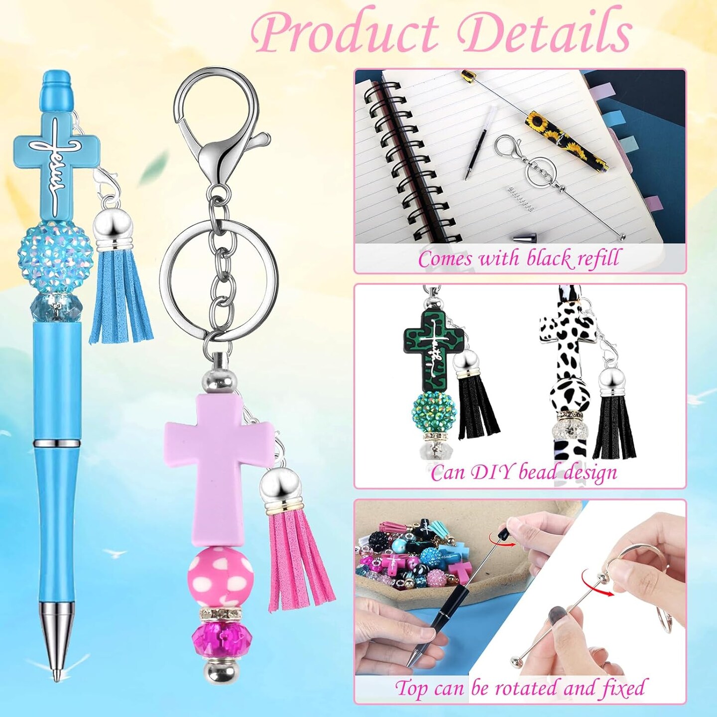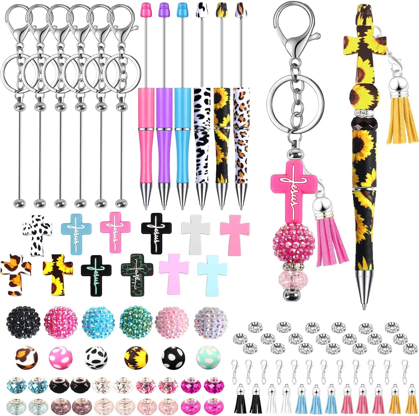 12 Pcs Beadable Pens and Beadable Keychain Bars