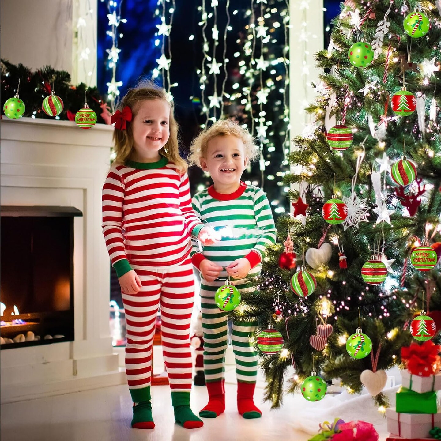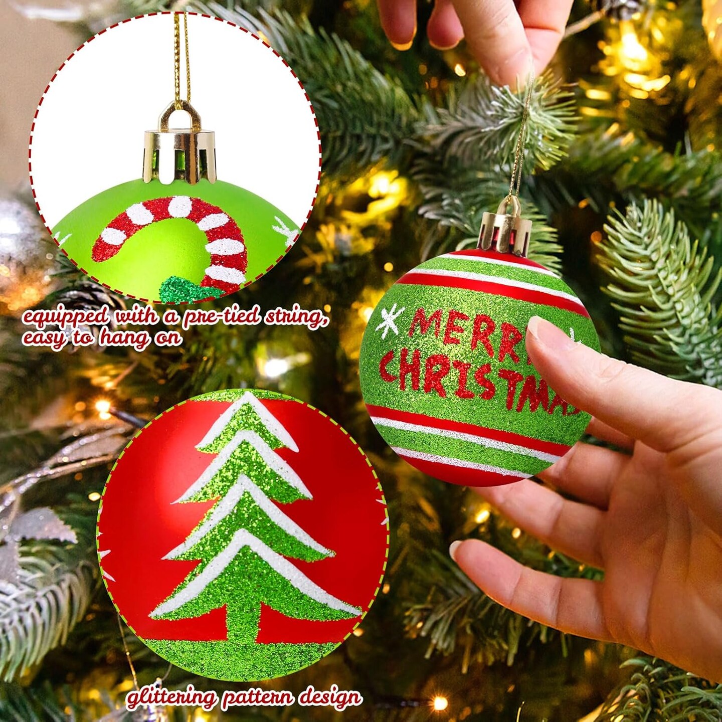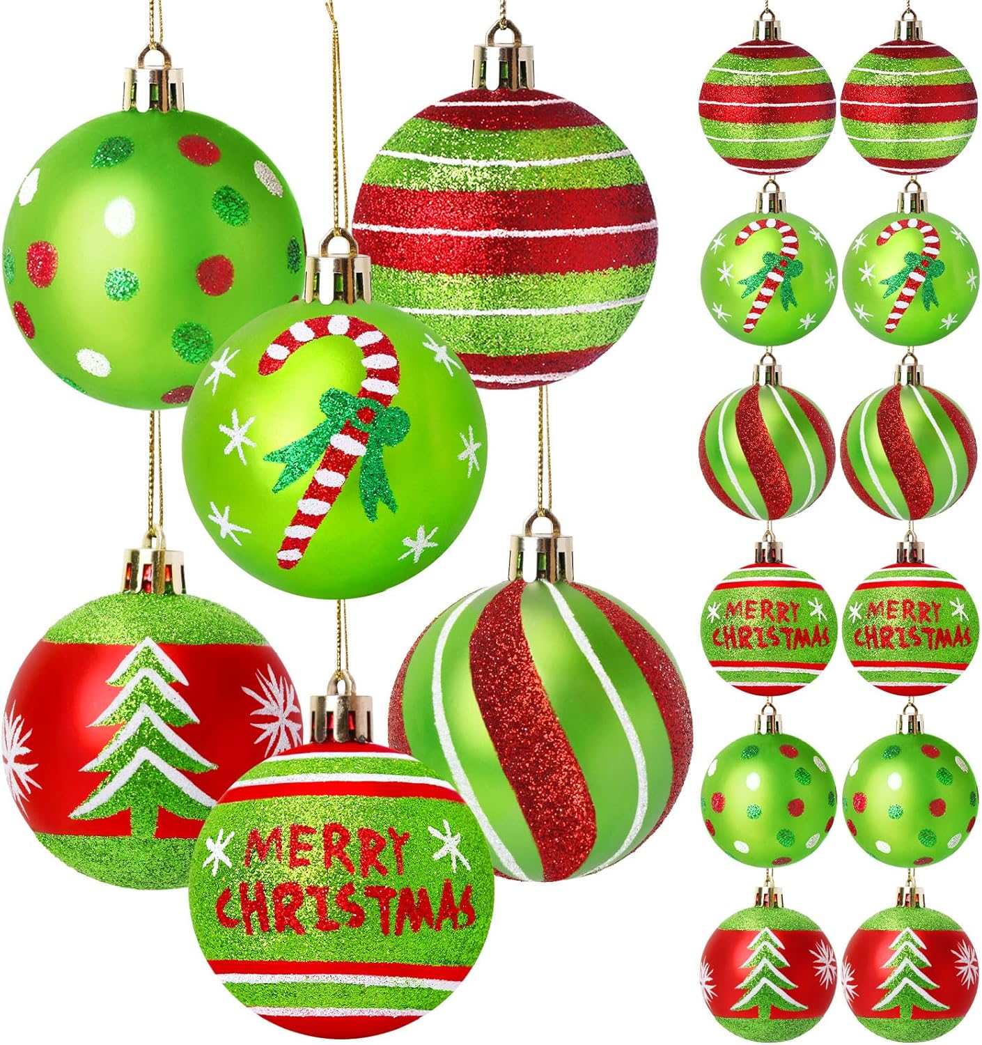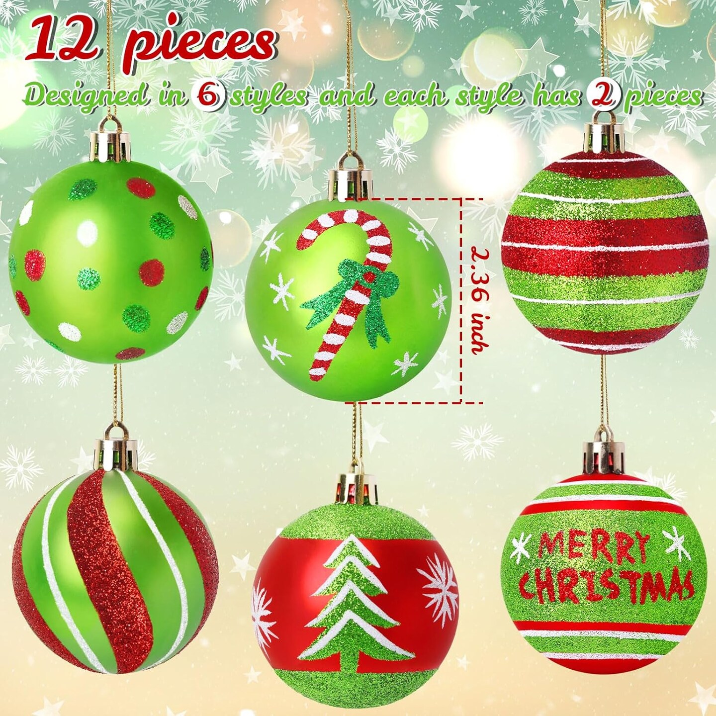 12 Pcs Christmas Ball Ornaments (Red, Green)