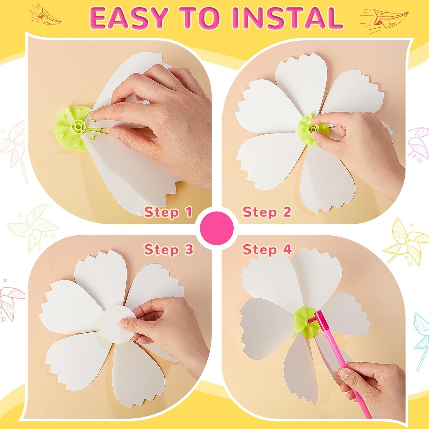 12 Pcs DIY Paper Pinwheels Bulk Make Your Own Pinwheel White Blank Paper Pinwheels Paper Craft Kits for Boys Girls Summer Activities School Group Daycare Home Project