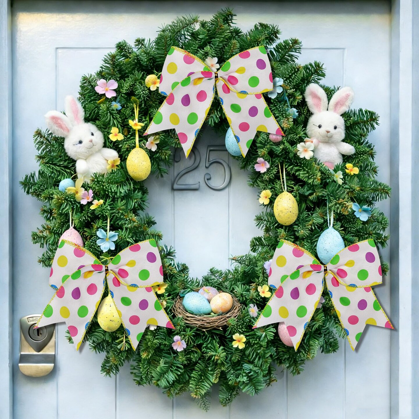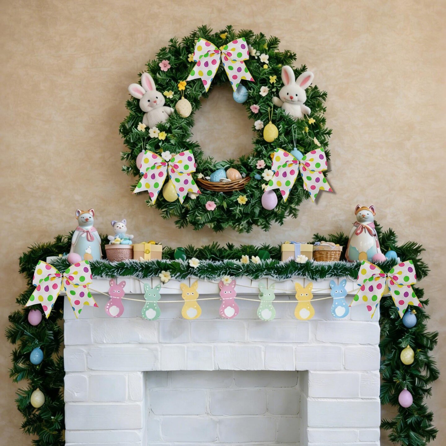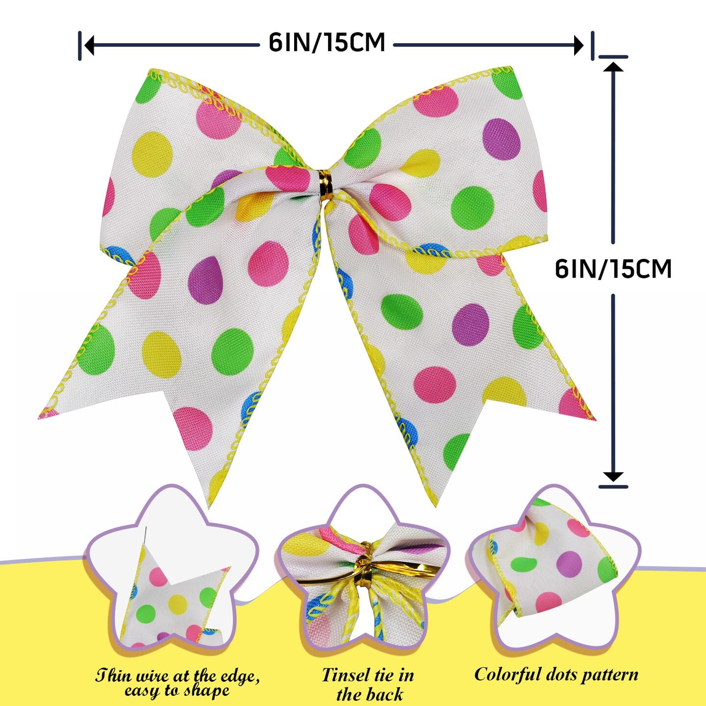 12 Pcs Easter Tree Bows Decorations,6 Inch Spring Summer Ornaments with Colorful Dots for Tree Basket Home Party Front Door Indoor Outdoor Holiday Decor