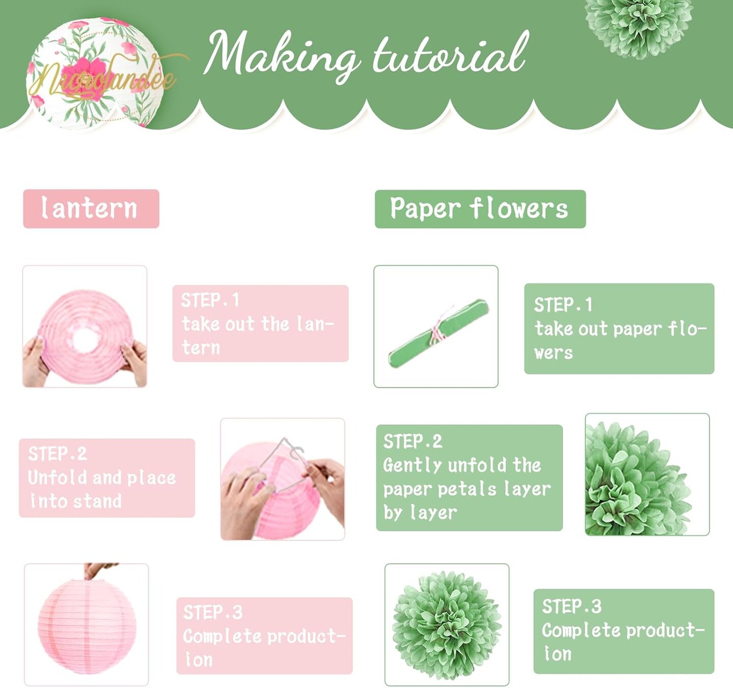 12 PCS Green Pink Blooms Paper Lanterns Tissue Pom Pom(Green Pink)