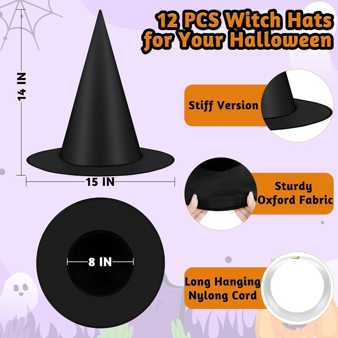 12 PCS Halloween Witch Hats with 164 FT Rope