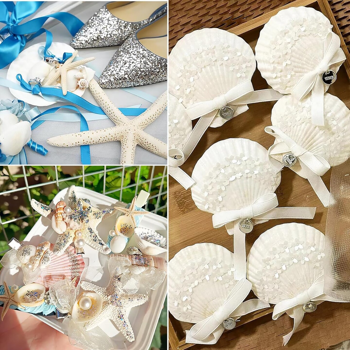 12 PCS Large Starfish and Large Scallop Shells, 2"-5" Natural White Seashells for Crafts Wedding Decor Beach Theme Party, Fish Tank and Vase Filler