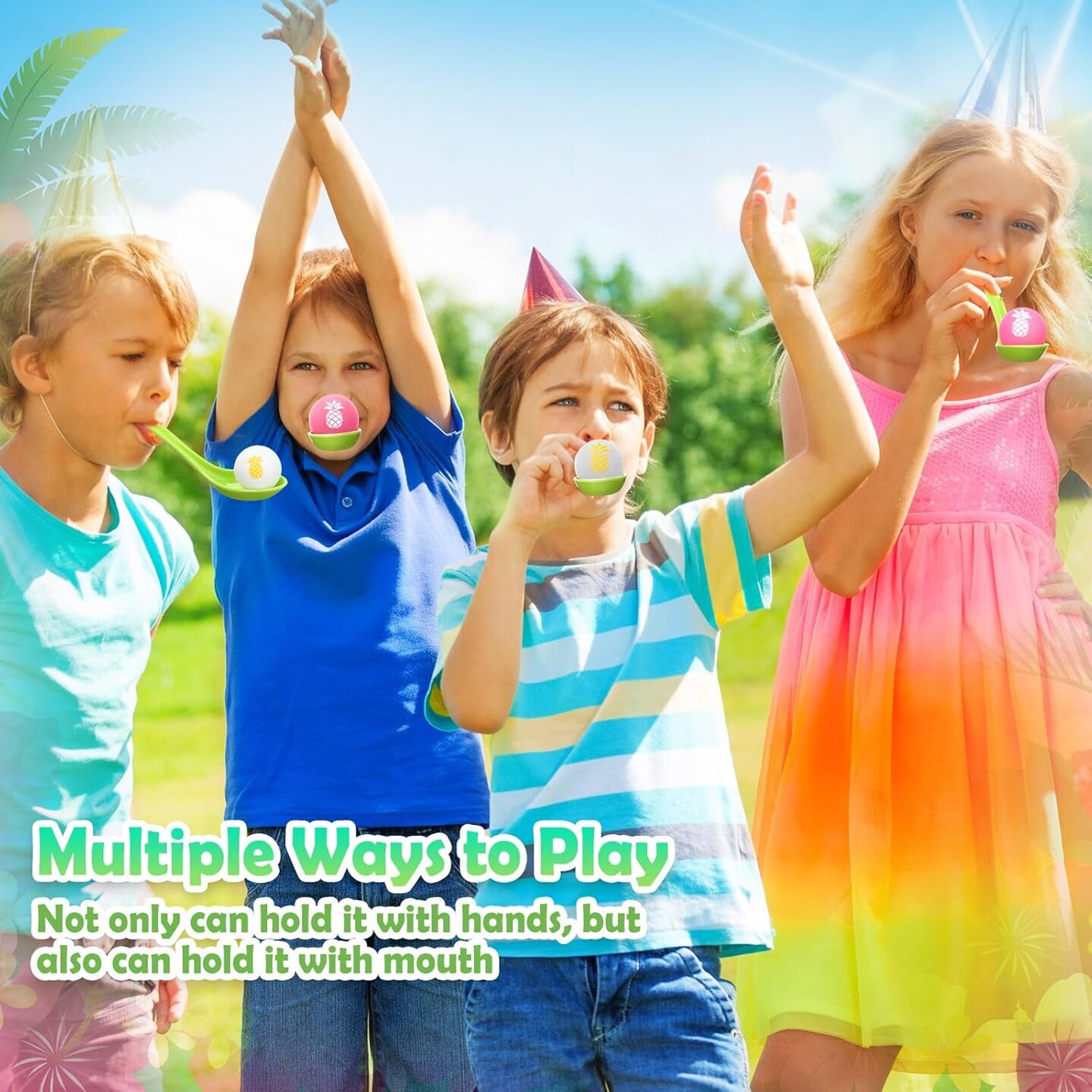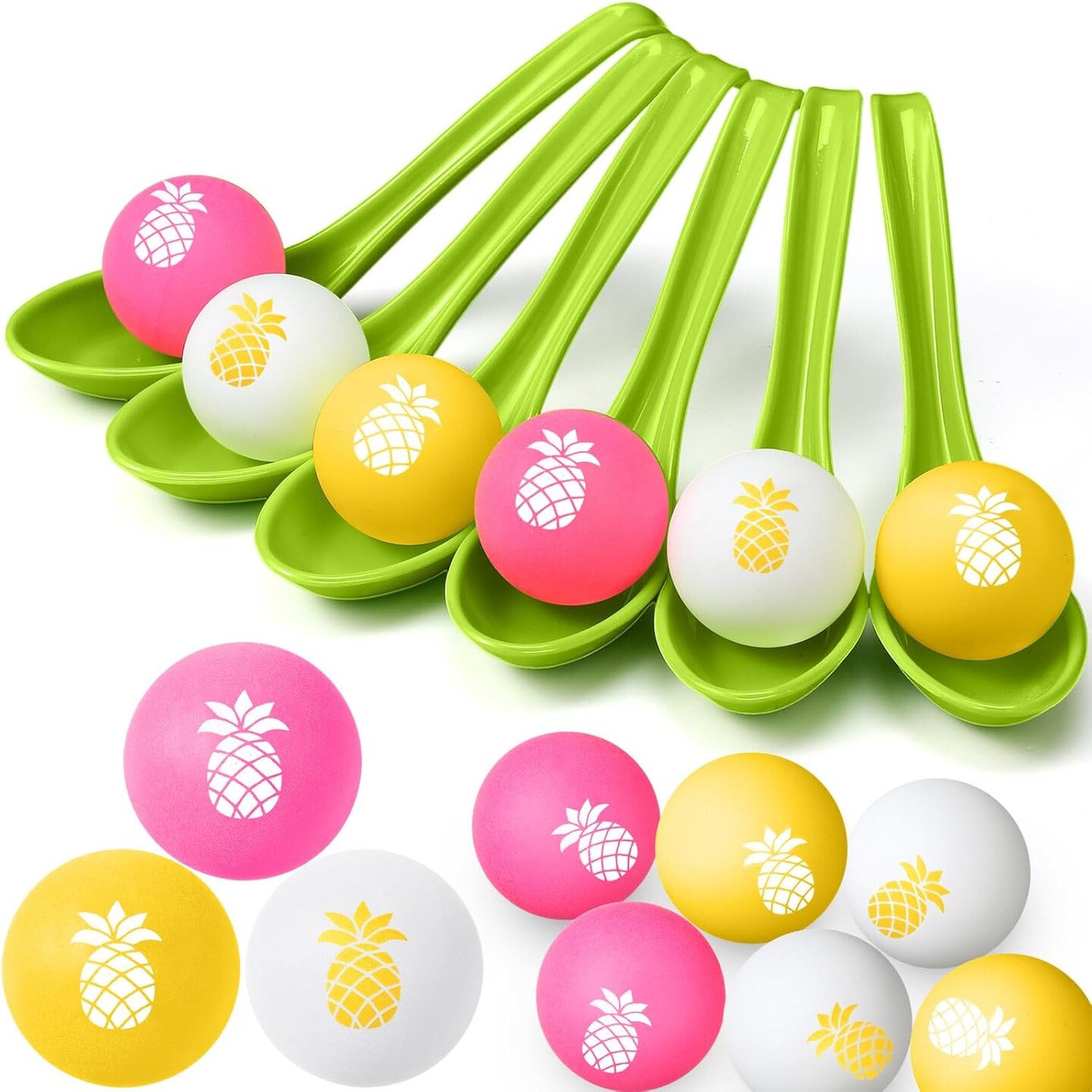 12 Pcs Luau Games Hawaiian Spoon Race Games Toy Set Luau Party Favors Tropical Summer Birthday Party Themed Ball and Spoon Race Game for Aloha Party Supplies(Green,Pineapple)