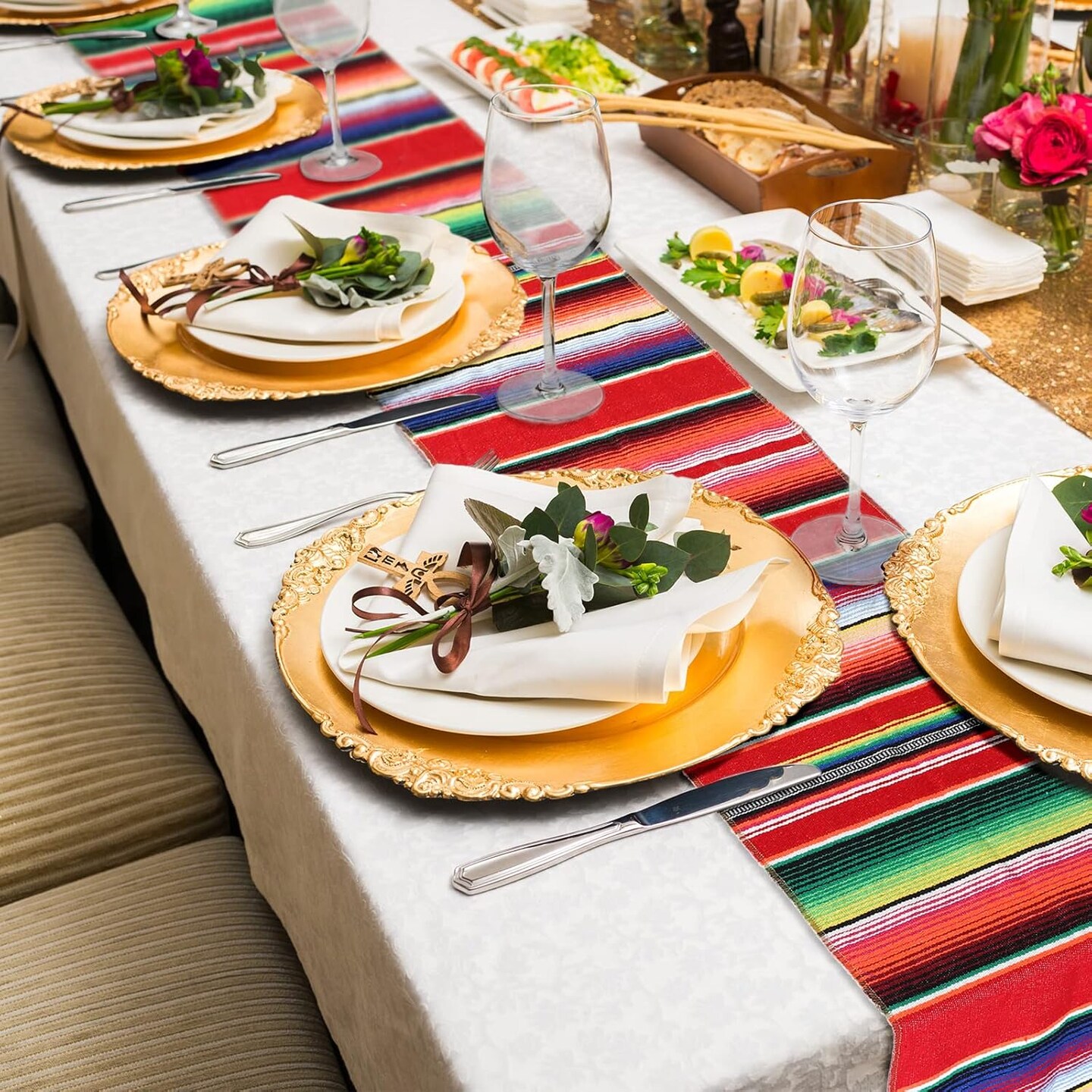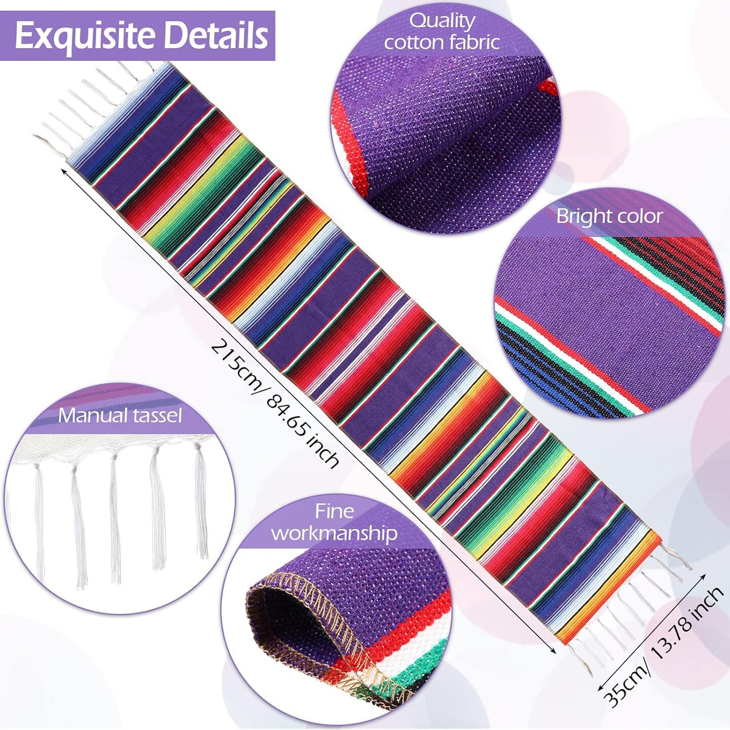 12 Pcs Mexican Serape Table Runners Mexican Theme Party Table Decorations Colorful Striped Serape Table Blanket Runner Tablecloth for Cinco de Mayo Mexican Fiesta Party, 14 x 84 Inch (Mixed Colors)
