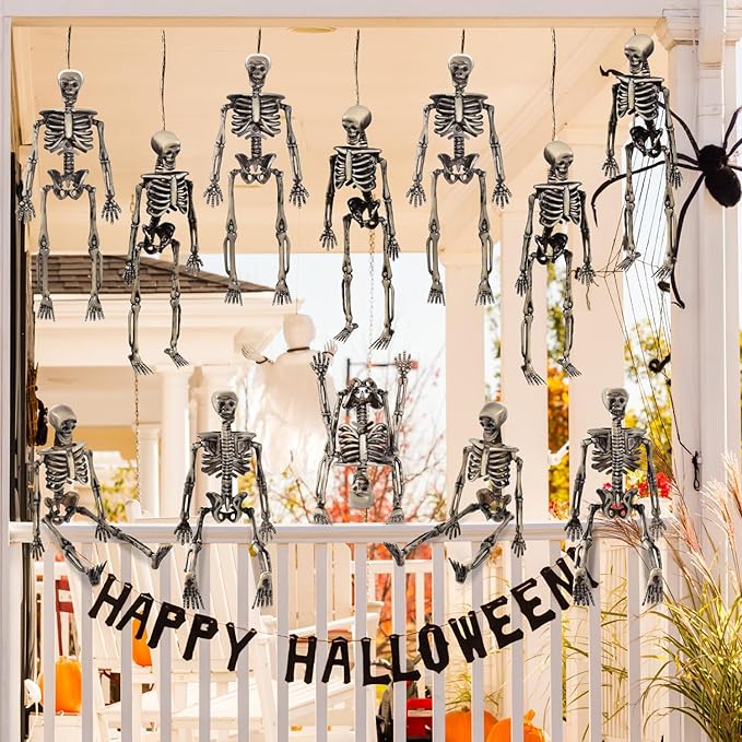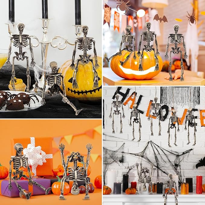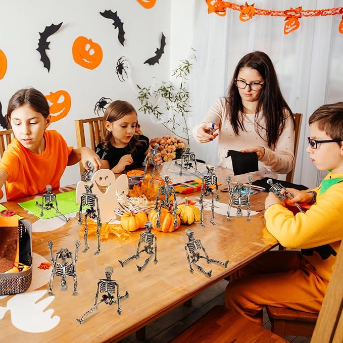 12 Pcs Mini Skeleton Figurines, Plastic Small Skeleton Figurines for Crafts, Halloween Old Model Figurines for Party Supplies Decor