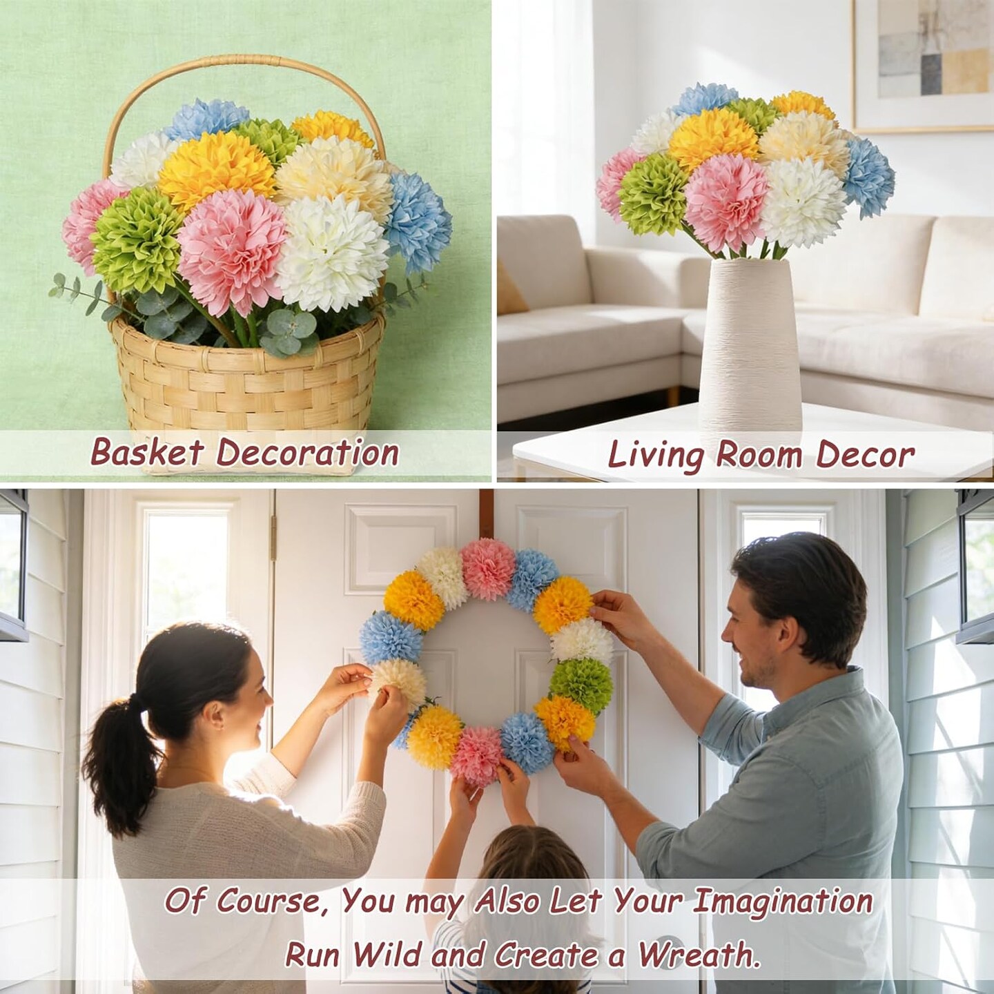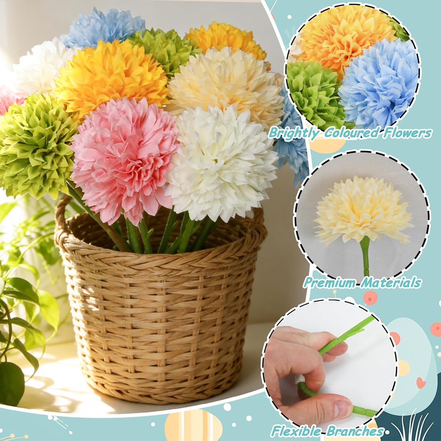 12 Pcs Mixed Color Artificial Ball Chrysanthemum – Faux Flowers for Easter, Spring, Wedding, Home & Garden Décor