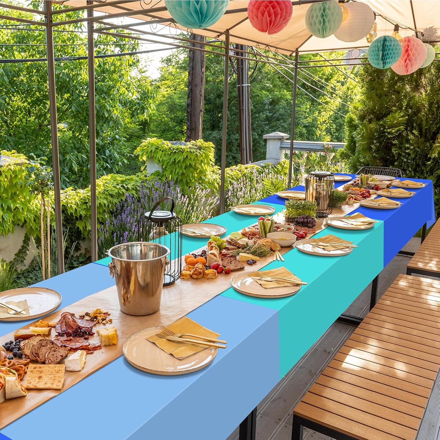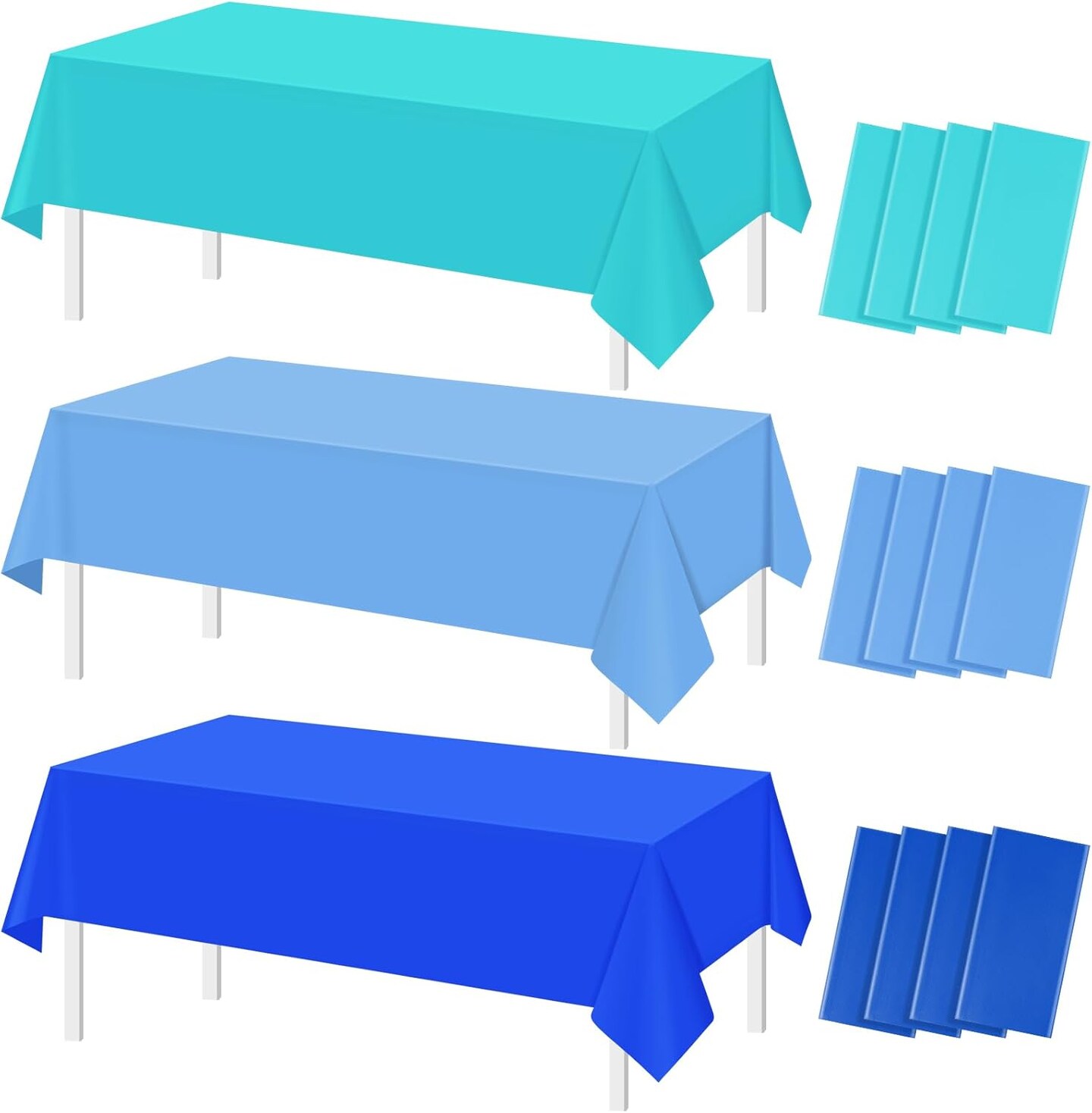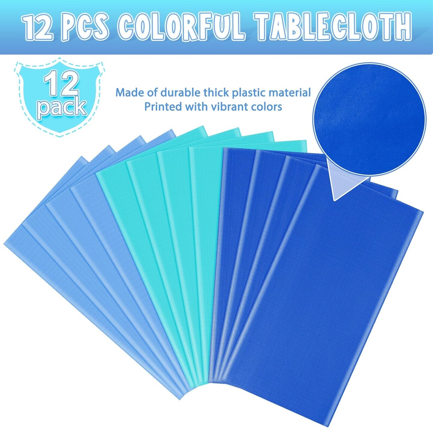 12 Pcs Ocean Theme Tablecloth, Disposable Assorted Blue Tablecloth, Plastic Rectangle Light Blue Under The Sea Beach Surf Ocean Table Covers