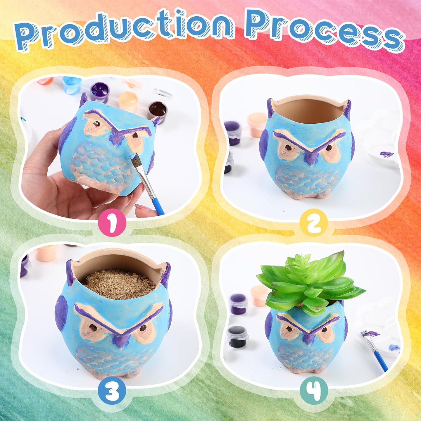 12 Pcs Paint Your Own Owl Ceramic Planters with 2 Set of Paints