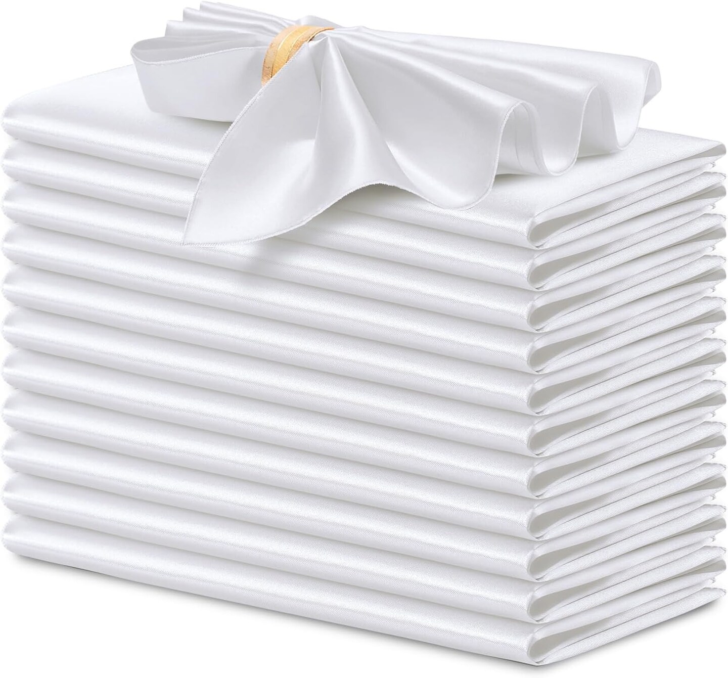 12 PCS Satin Cloth Napkins – 17×17 Inch Square Reusable Table Napkins for Wedding, Banquet & Party Decor