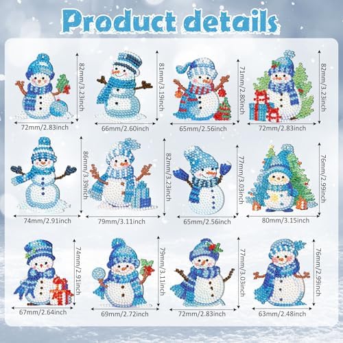 12 Pcs Snowman Diamond Painting Keychain 5D DIY Diamond Painting Kit Christmas Hanging Diamond Art Set Diamond Art Christmas Ornaments for Kids Christmas Crafts Home Decorations(Blue)
