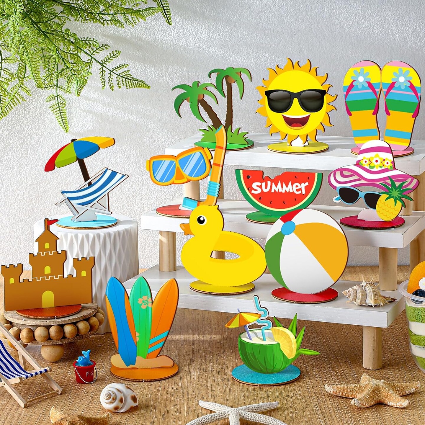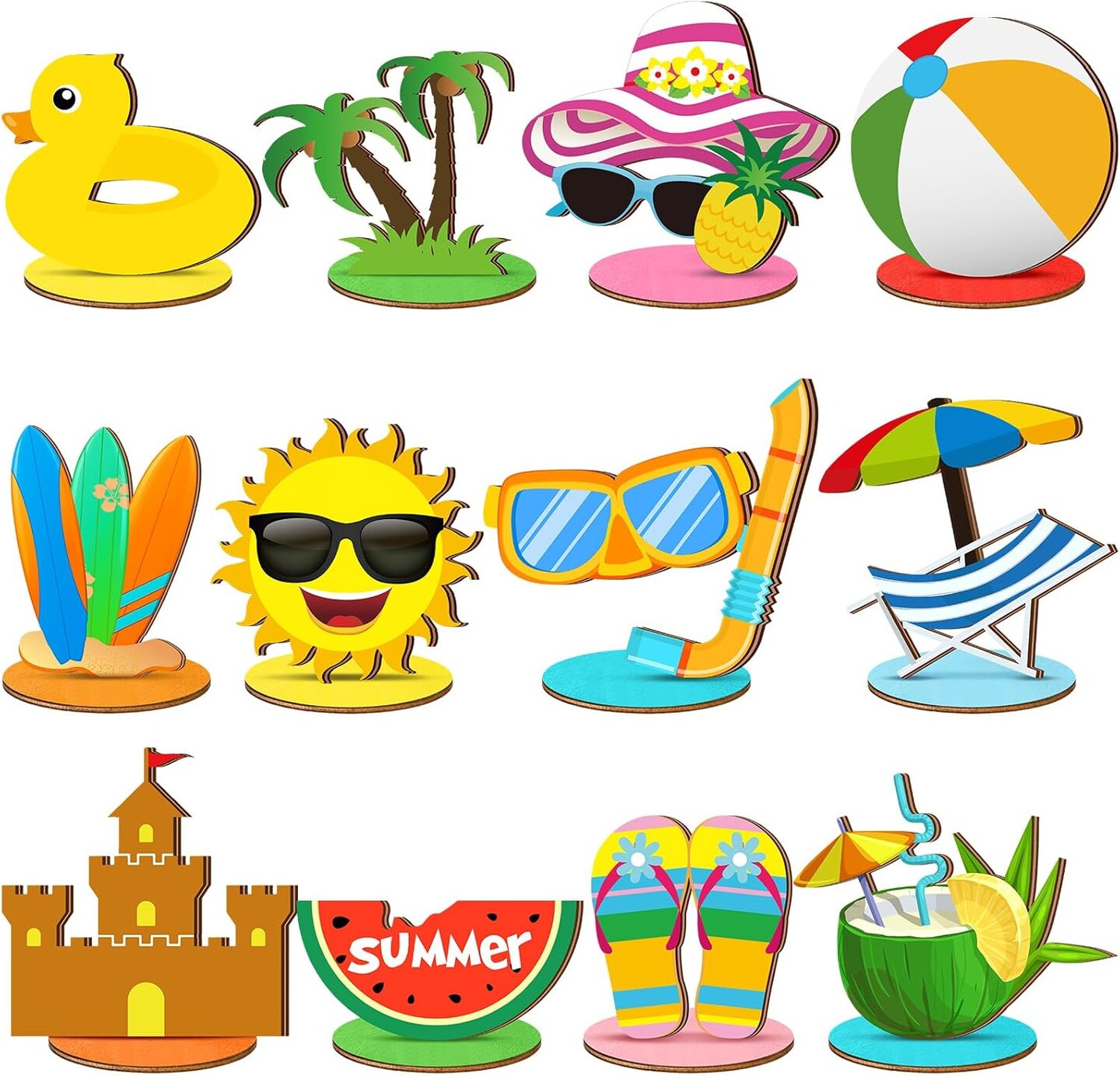 12 Pcs Summer Decor Summer Beach Table Centerpieces Decorations Beach Pool Balls Party Wood Blocks Home Decoration
