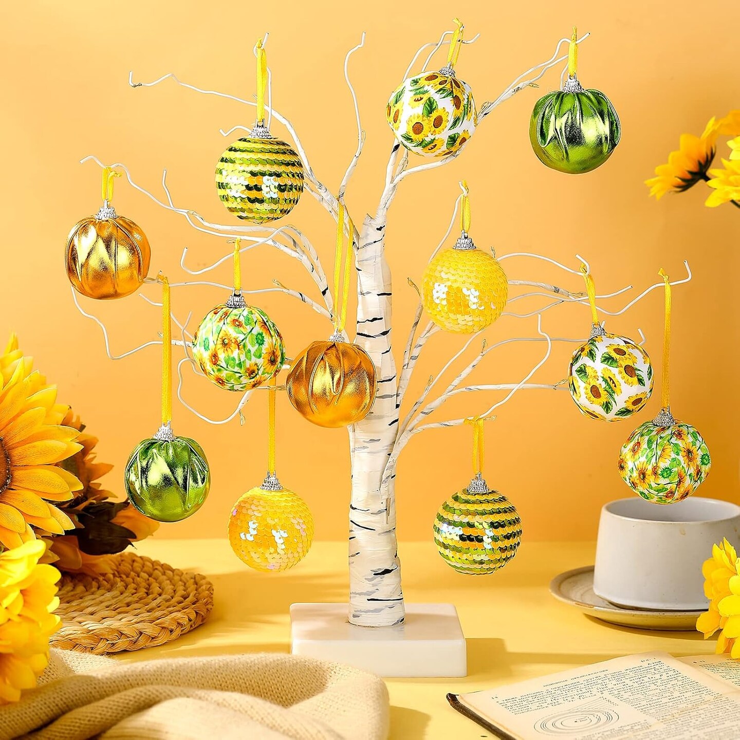 12 Pcs Summer Sunflower Tree Ornament Shiny Hanging Sunflower Ball Yellow Sequin Hanging Ornament Sunmer Tree Decoration