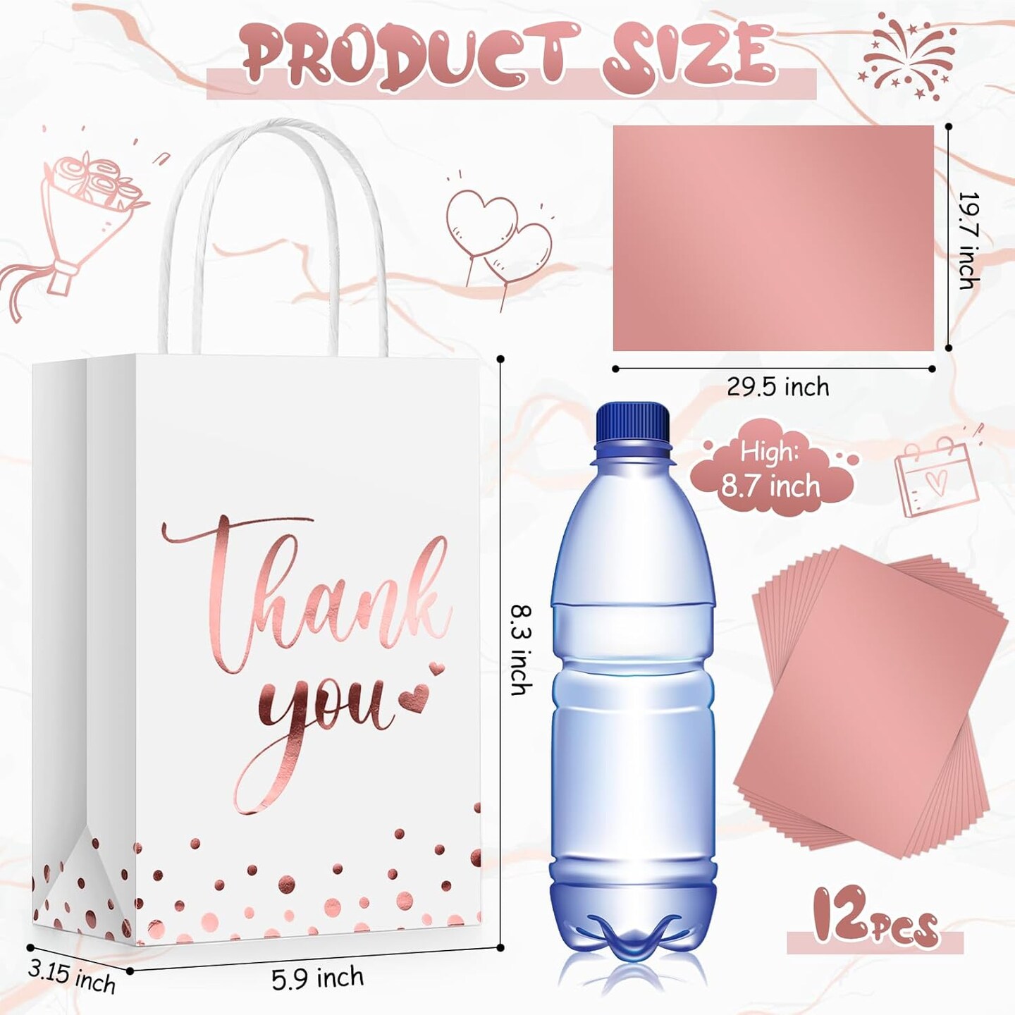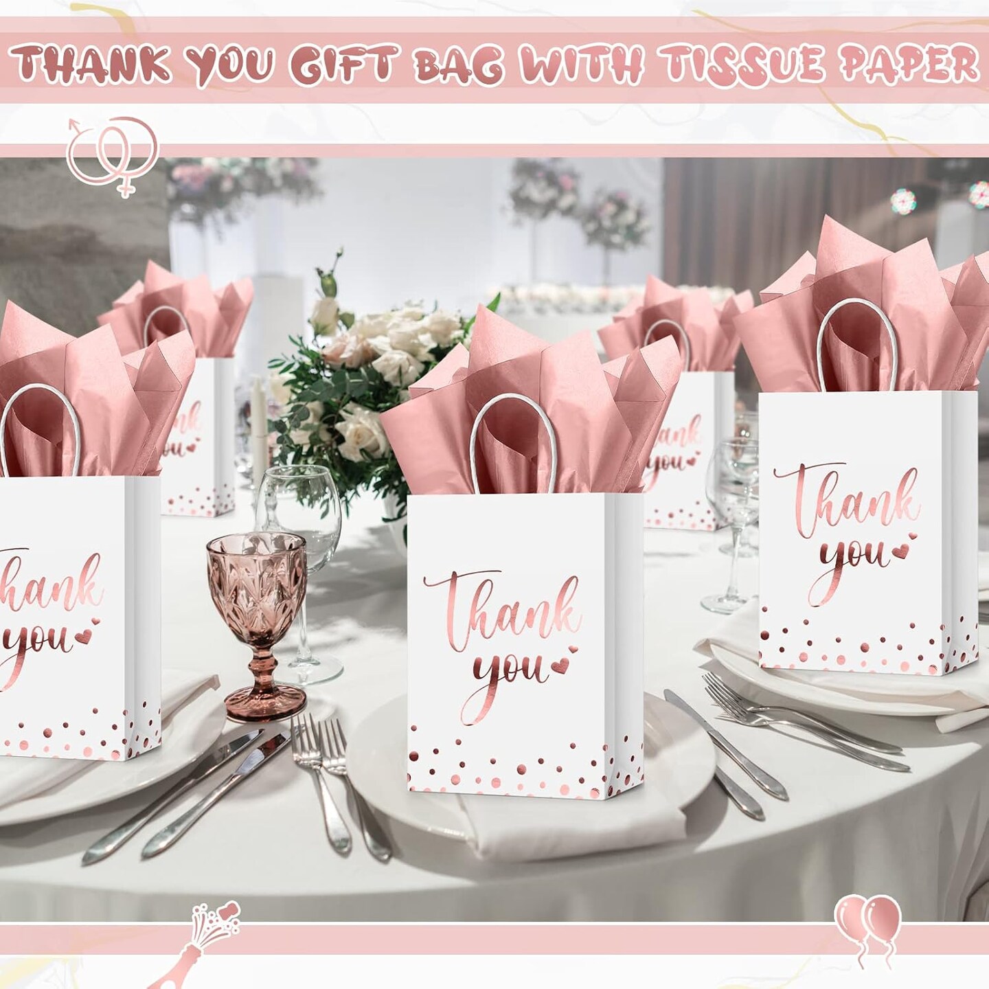 12 Pcs Thank You Gift Bags with Tissue Paper Gold Polka Dots Thank You Bags with Handle Party Favor for Wedding Birthday Baby Shower Business Shopping(Rose Gold)
