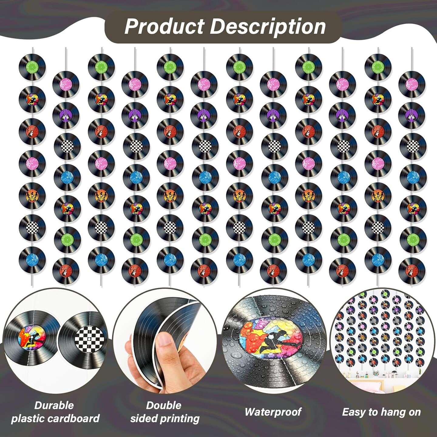 12 PCS Vinyl Records Banners 50's Party Decorations