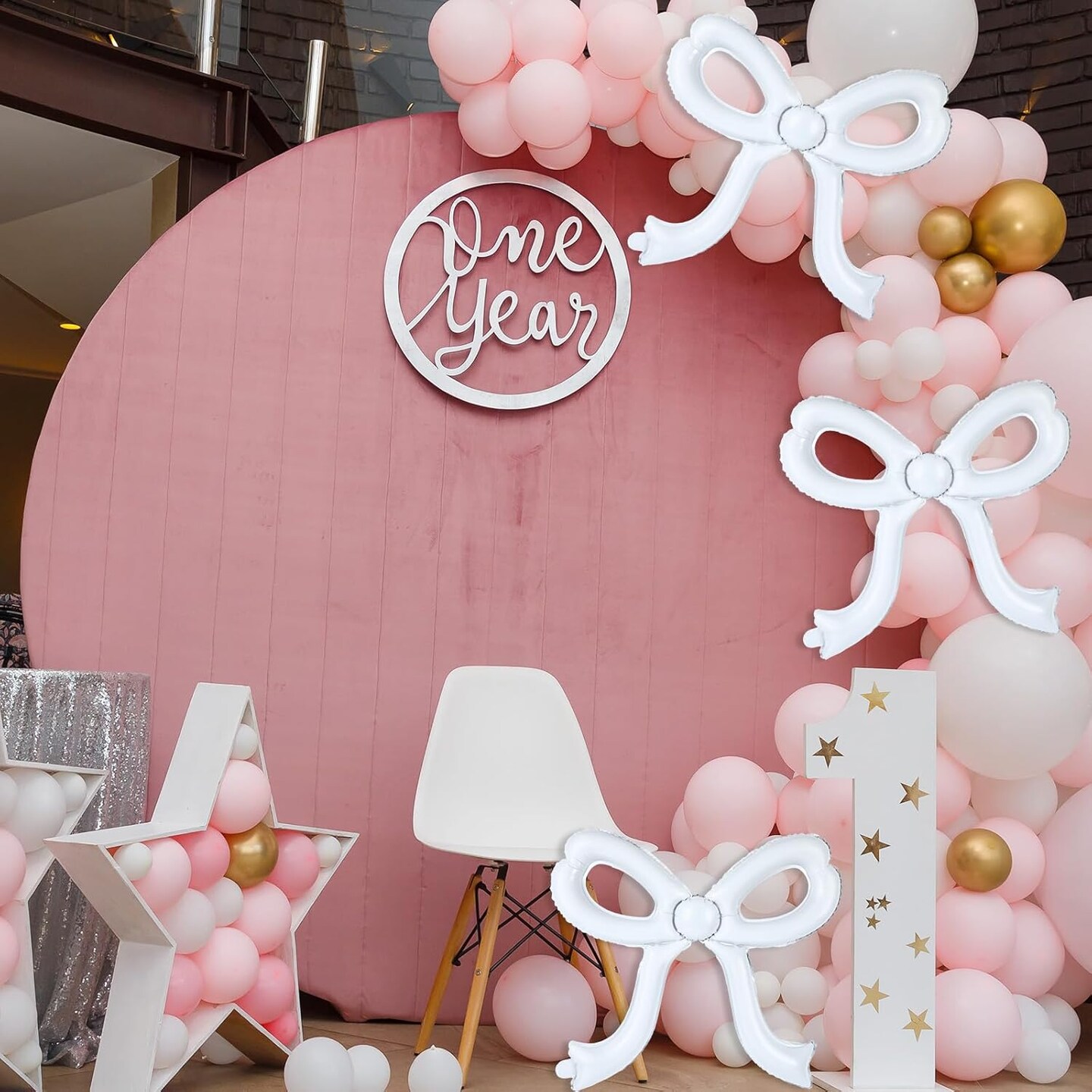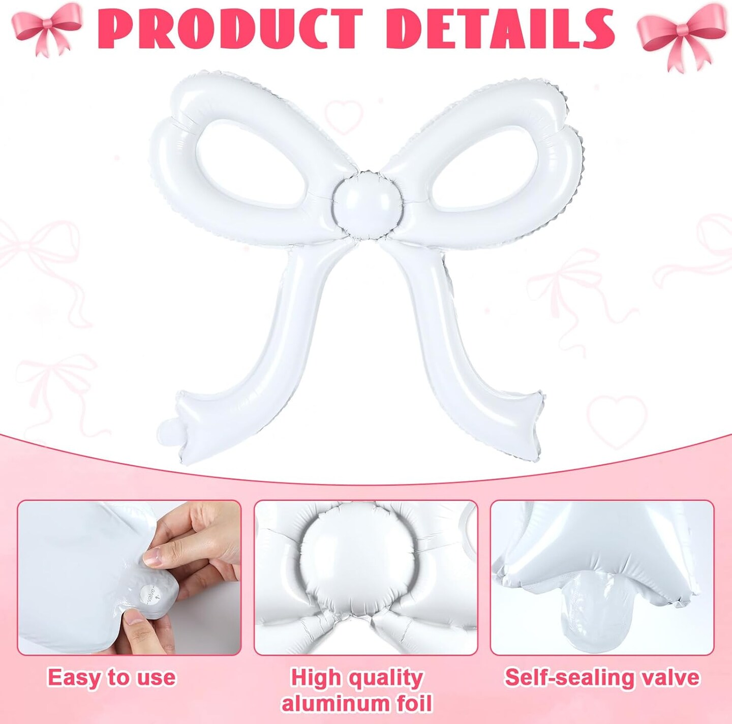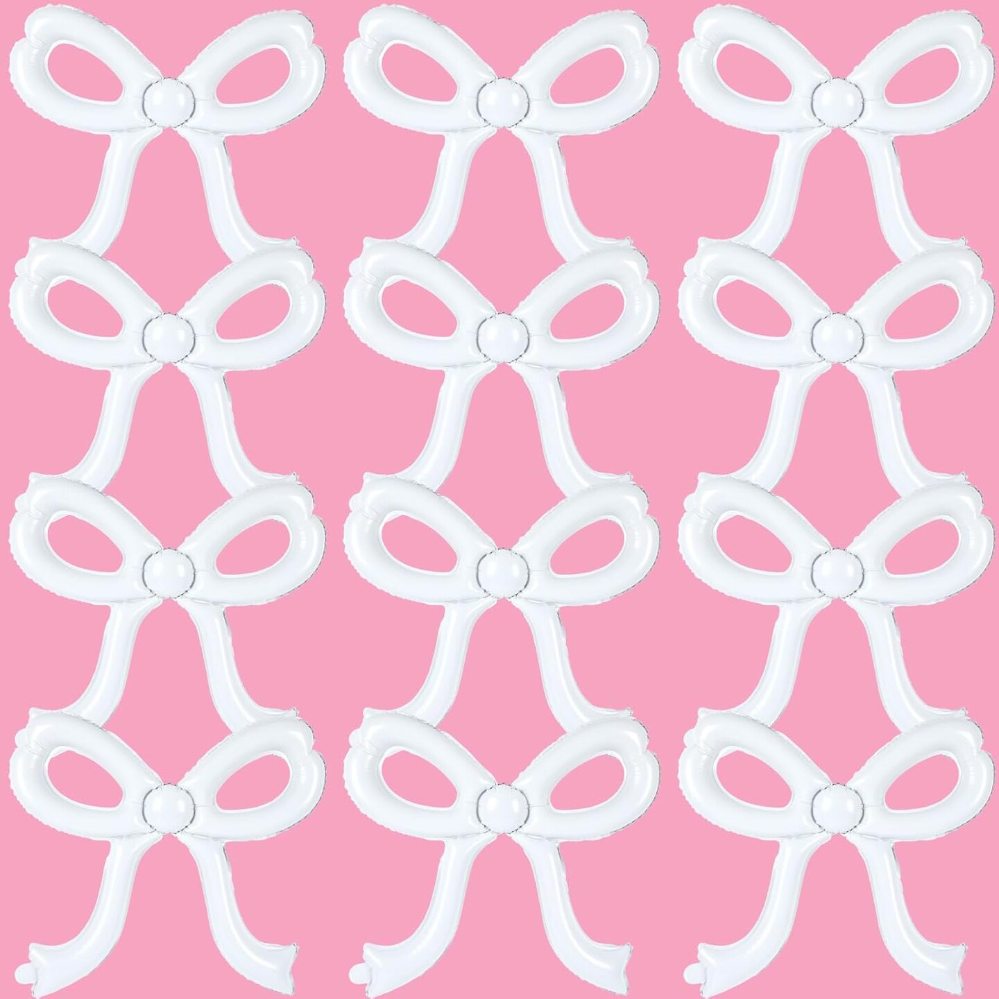 12 Pcs White Bow Balloons Coquette Birthday Bachelorette Party Decorations Giant Bows Themed Foil Balloon for Women Girls Baby Shower Decor