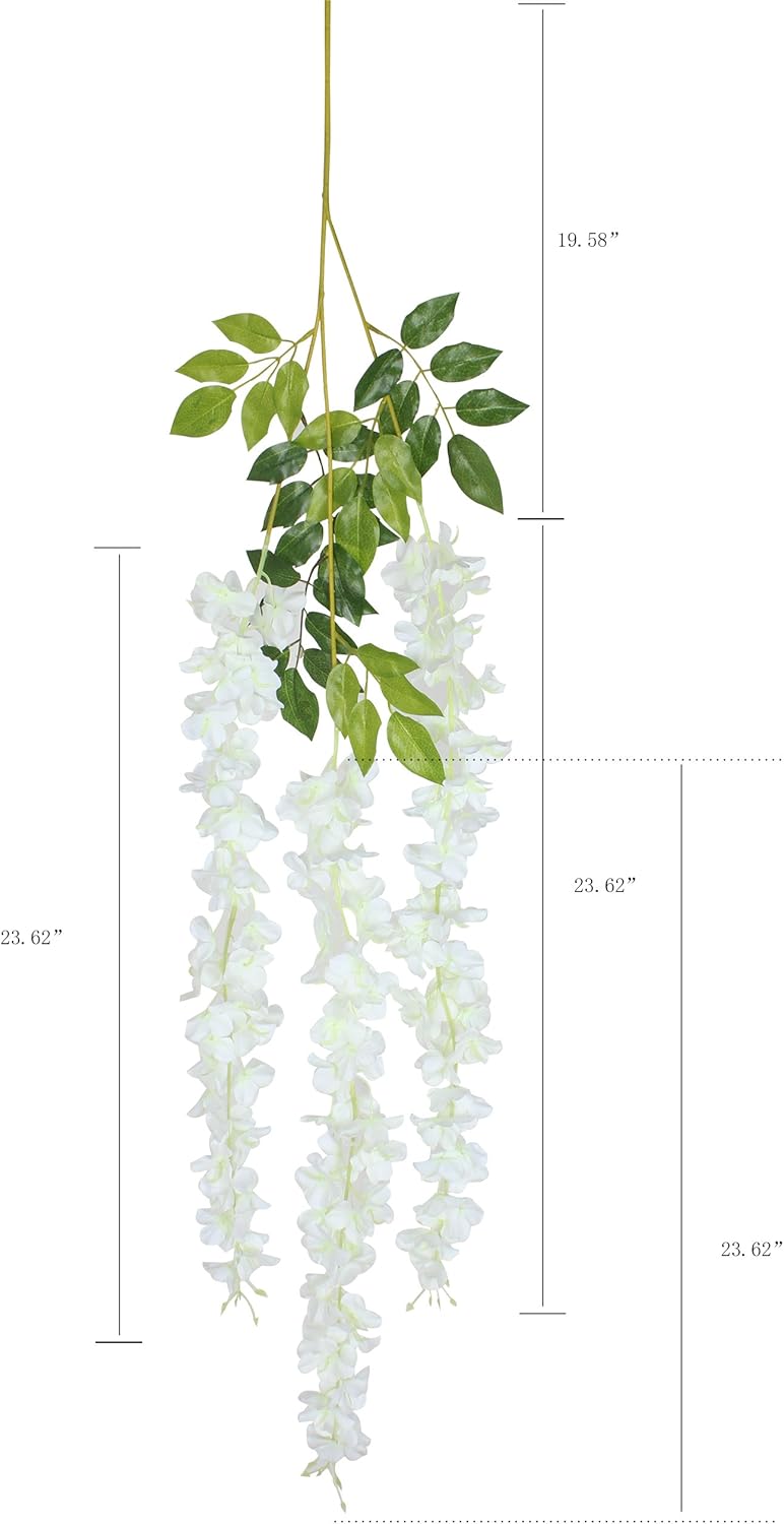 12 Piece Artificial Silk Wisteria Vine Flower Garland (White)
