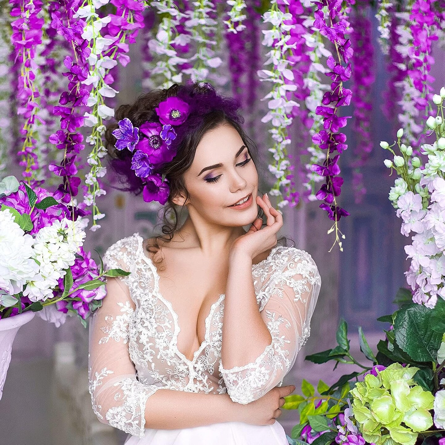 12 Pieces Artificial Wisteria Flowers 3.6 Feet Wisteria Vine Hanging Flower