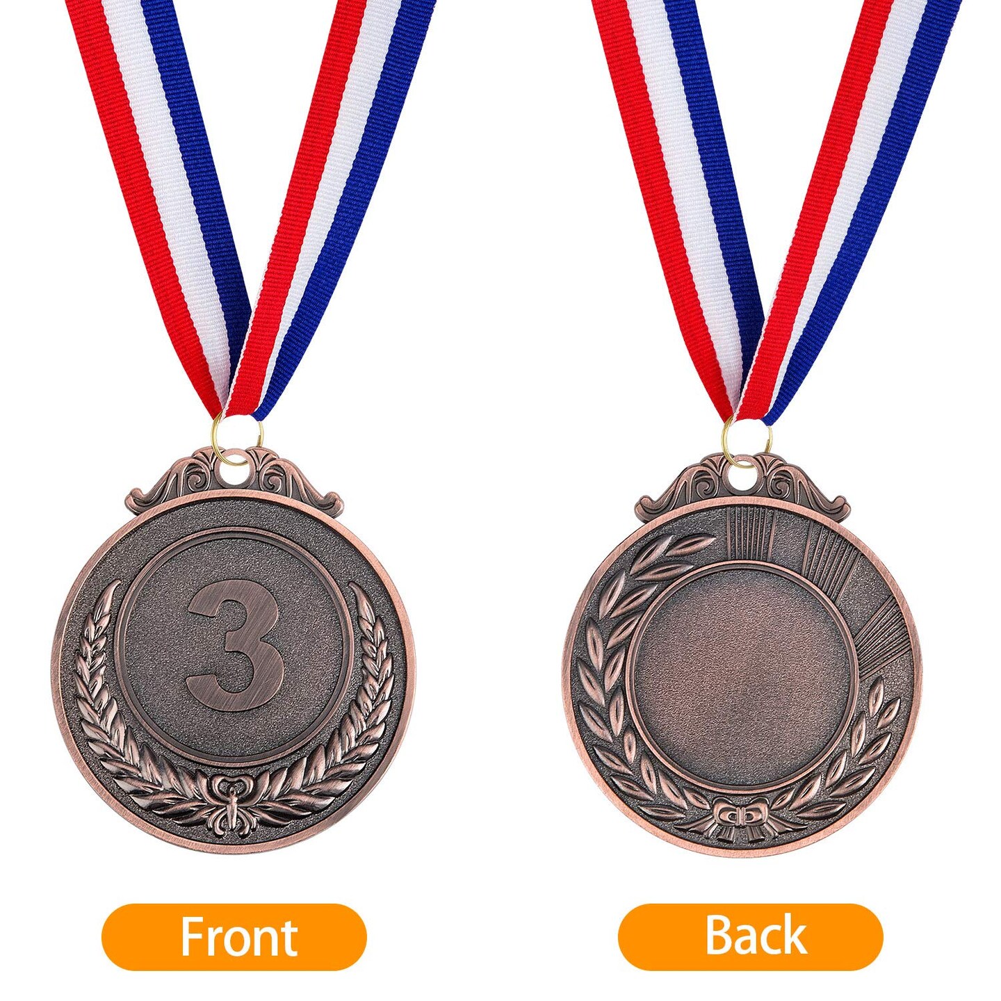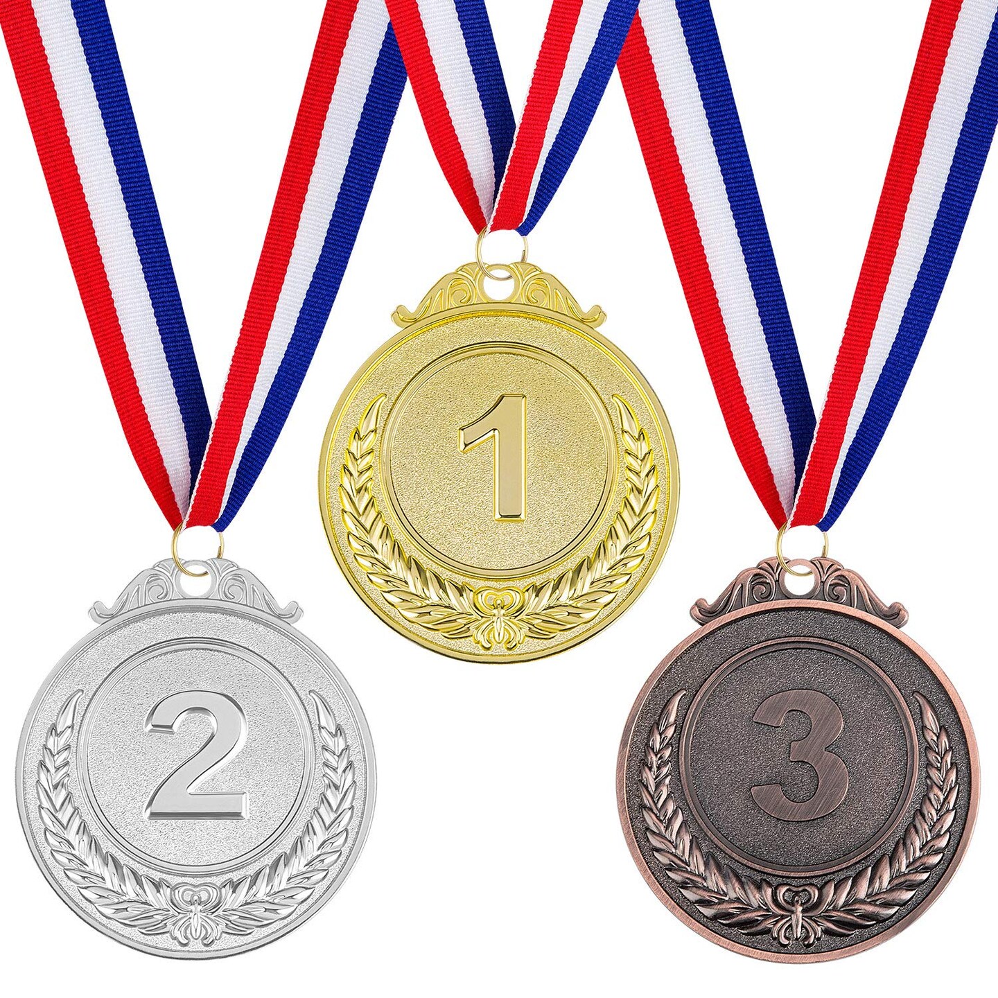 12 Pieces Award Medals 1st 2nd 3rd (Gold, Silver, Bronze) Metal Olympic Style Winner with Neck Ribbon, 2 Inches