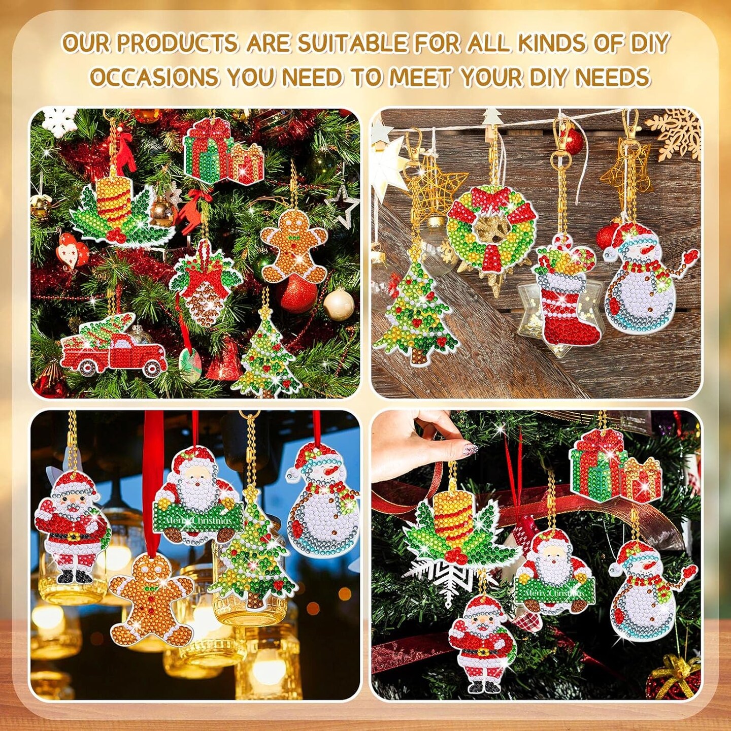12 Pieces Christmas Diamond Painting Kits Diamond Art Christmas Ornaments