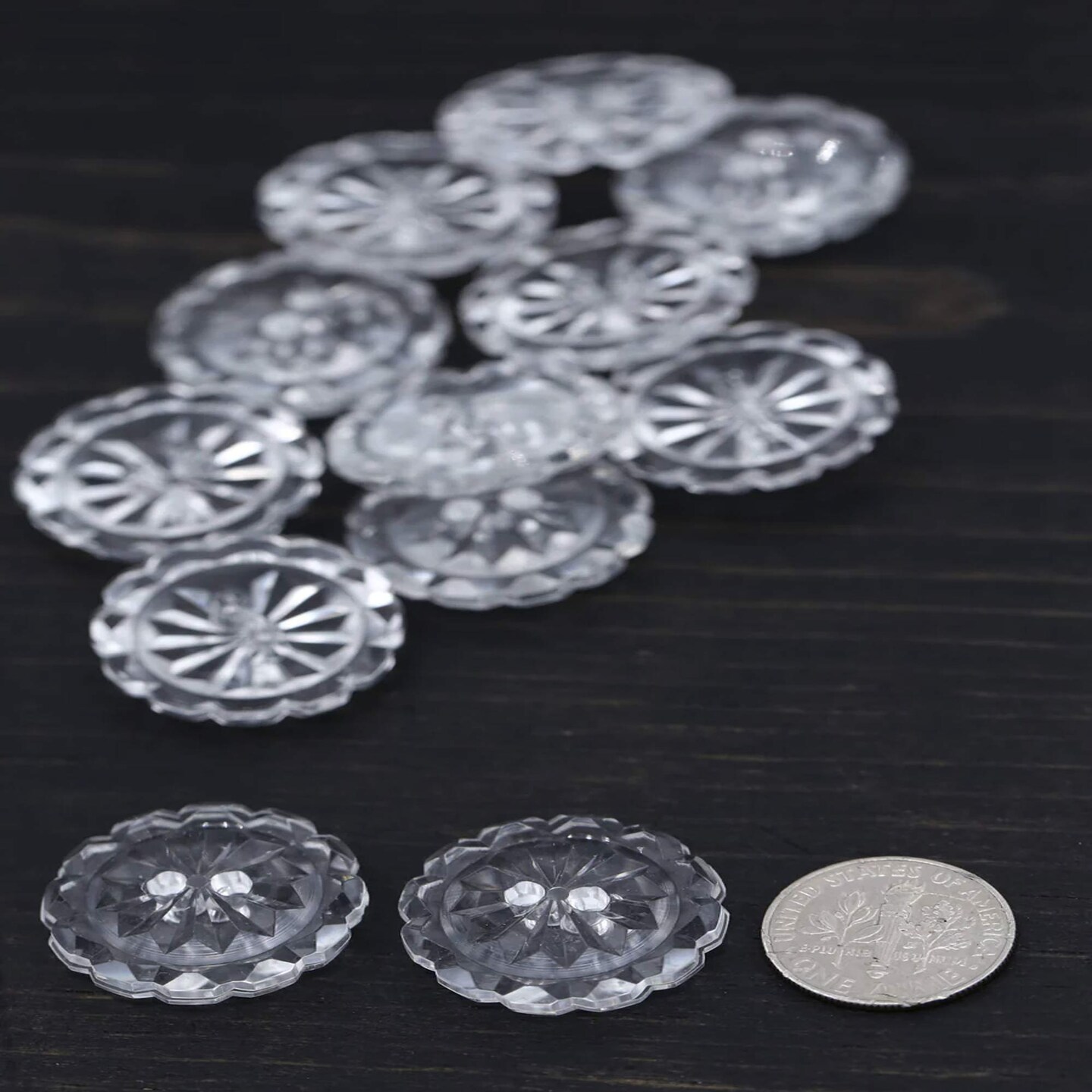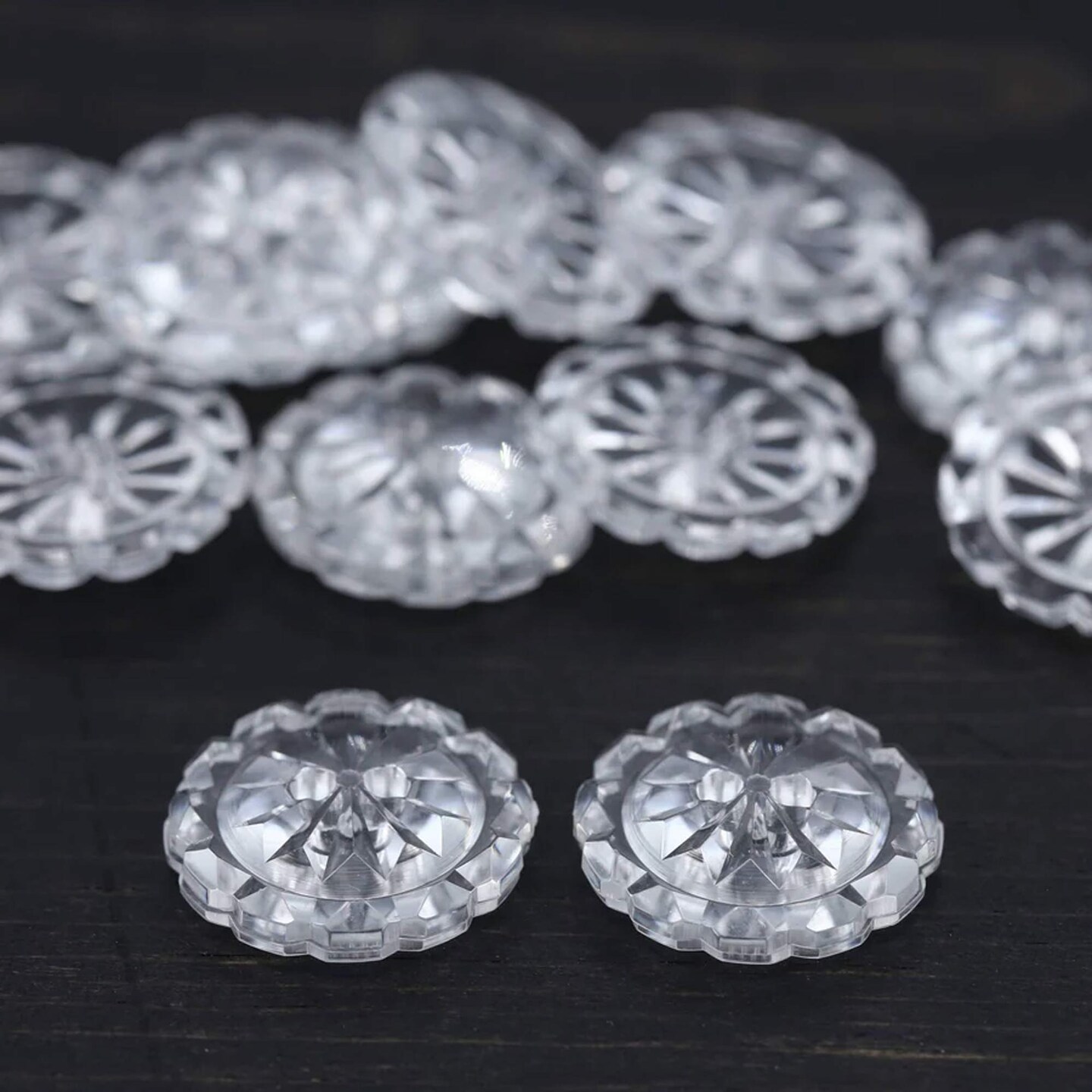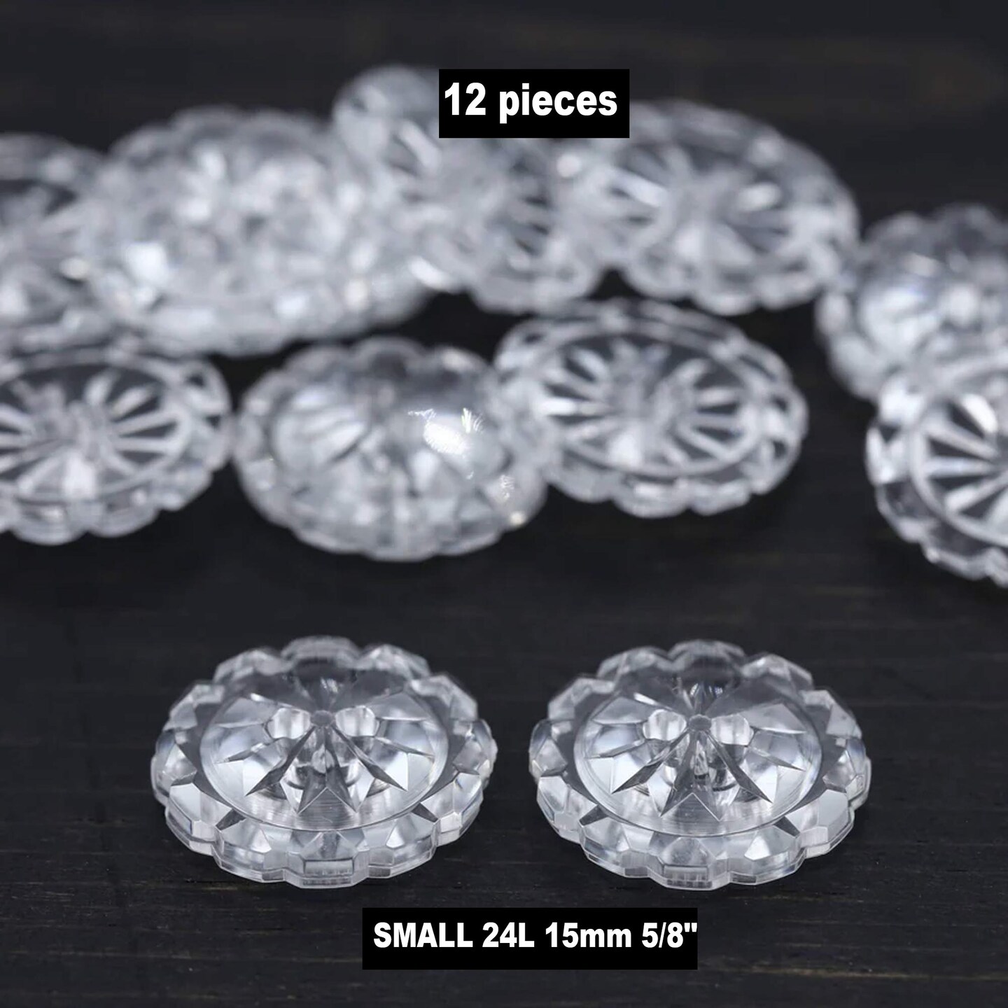 12 Pieces Clear Crystal Cut Buttons Small 5/8 Inch